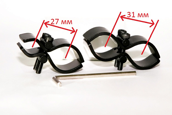 Комплект из двух универсальных креплений для фонарей на нарезное и гладкоствольное оружие. Подходит для большинства видов оружия и фонарей. На ствол крепится с помощью шестигранного ключа, который поставляется в комплекте.