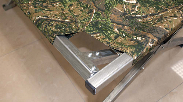 Очень удобная и прочная раскладная кровать.Незаменимая вещь на летнем отдыхе на природе в палатке.На ножках кровати стоят специальные заглушки что позволяет не рвать дно палатки.Кровать складывается до компактных размеров что очень удобно для транспортировки в машине