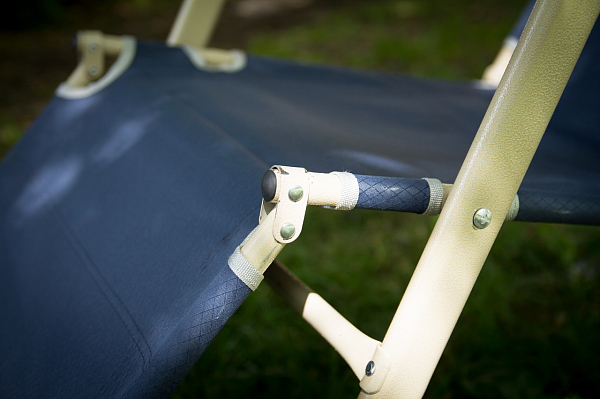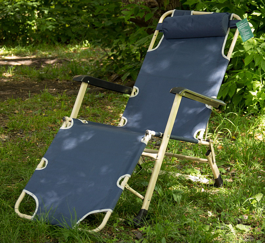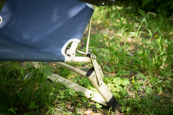 - Надежность: Шезлонг имеет ширину 52 см и оснащен стальной трубой, а также дополнительными элементами для предотвращения опрокидывания и увеличения стабильности. Максимальная нагрузка составляет 150 кг.