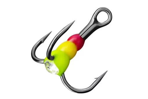 TREBLE ST-36 ВС COLOR MIX — тройные крючки с круглыми поддевами из тонкой проволоки дополнены разноцветной каплей и кристаллом. Конструктивные особенности: классическая, игольная заточка острия Classic Needle Sting, кованая проволока, каплевидное колечко. Выпускаются в четырех размерах и вариантах покрытия.