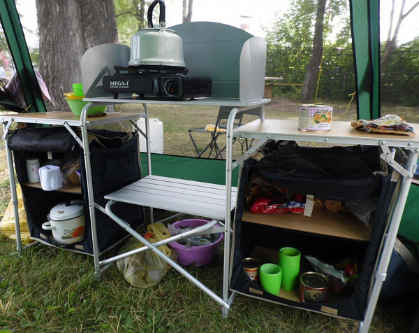 Самое главное в поездке это компактность, занимает места, как 2 складных стола, легкая и удобная. Готовить на столе в 1000 раз приятней, стенки вокруг газовой плитки защищают от ветра. А отличные боковые столики и для "фуршета" на скорую руку оч подходят. Отличная покупка. Спасибо.