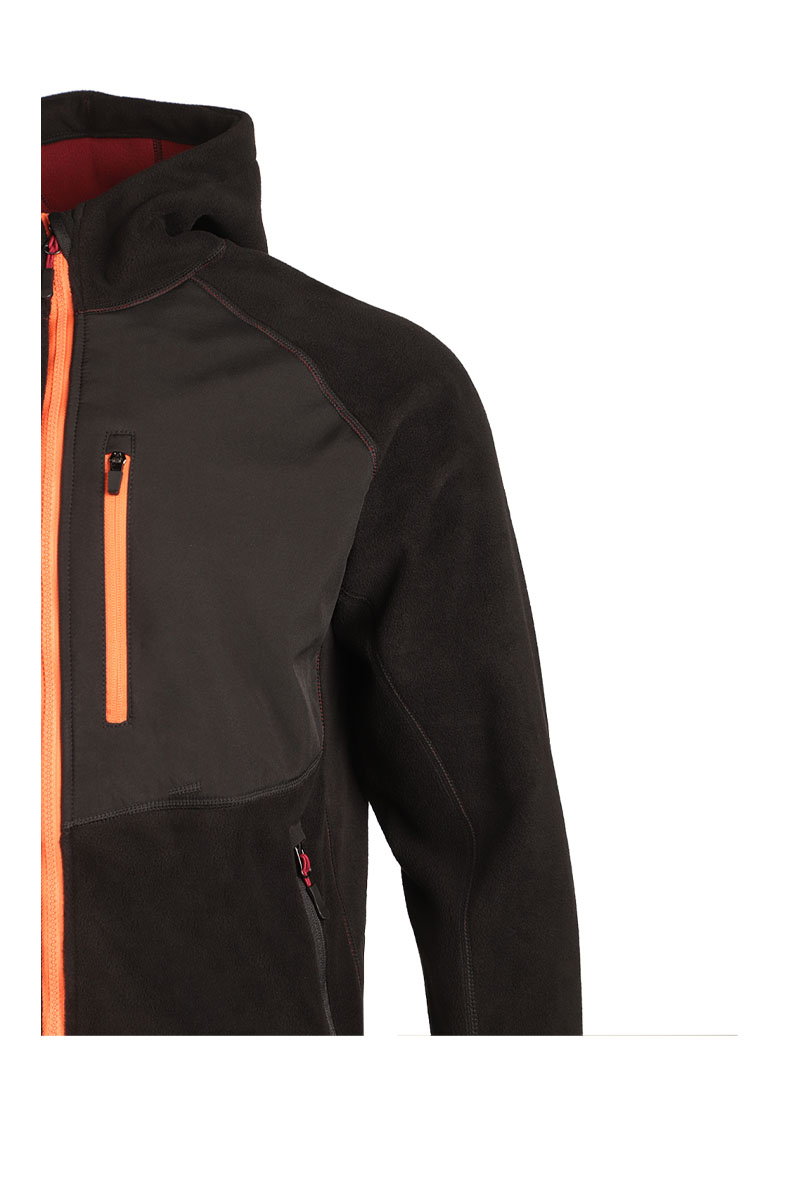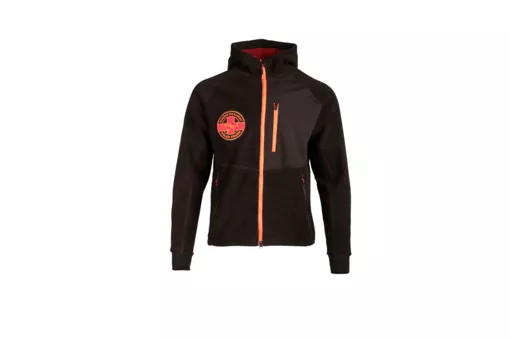 Куртка изготовлена из флисового материала. Модель предназначена для использования в прохладную погоду. Конструкция предусматривает свободу движений. В качестве основного материала используется полиэстер. Куртка черного цвета.
