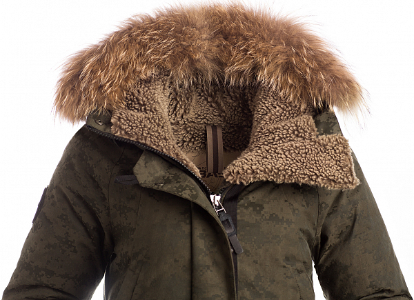 - изнутри плечевая зона и капюшон утеплены материалом Hi Loft с натуральной шерстью;