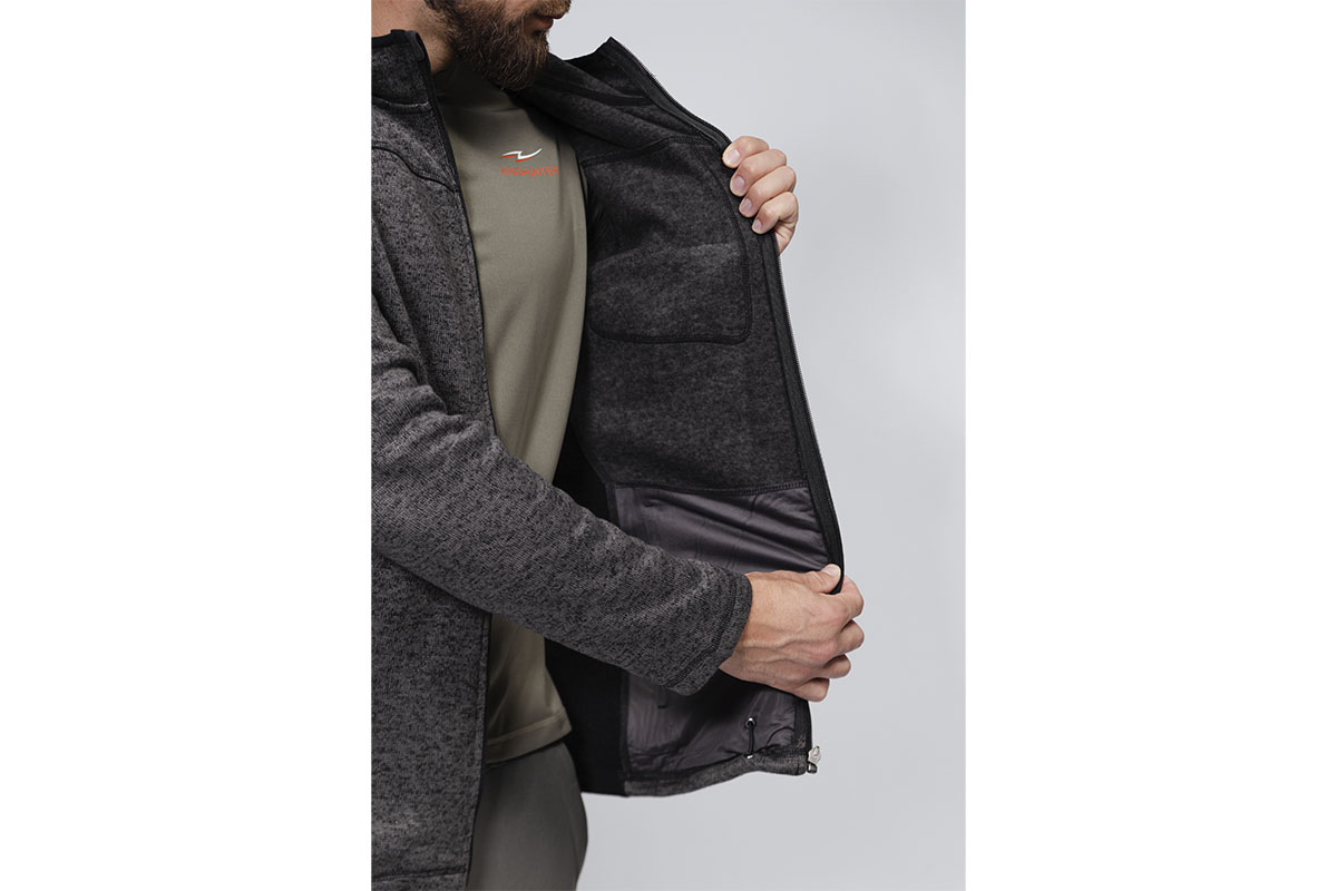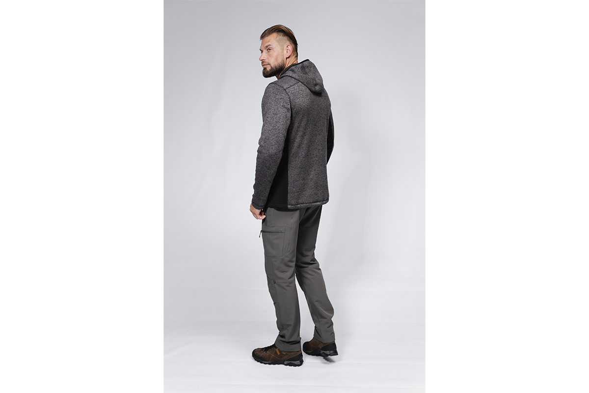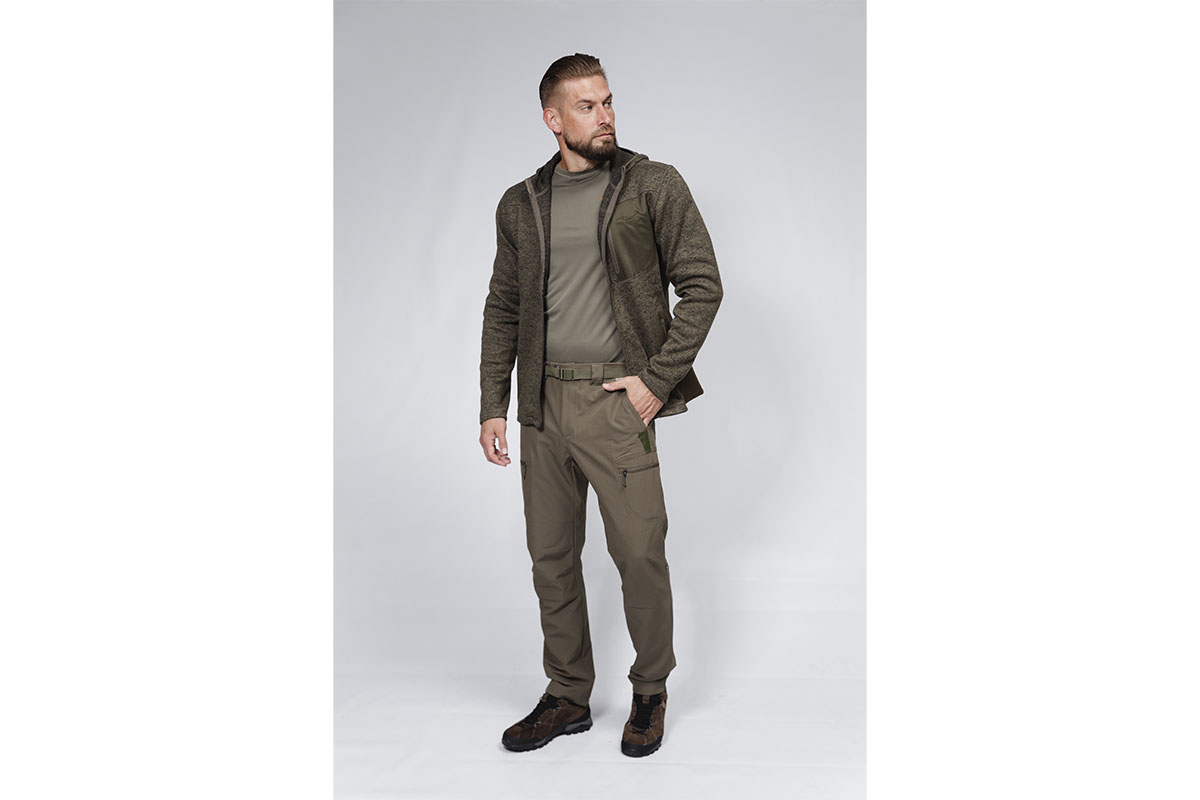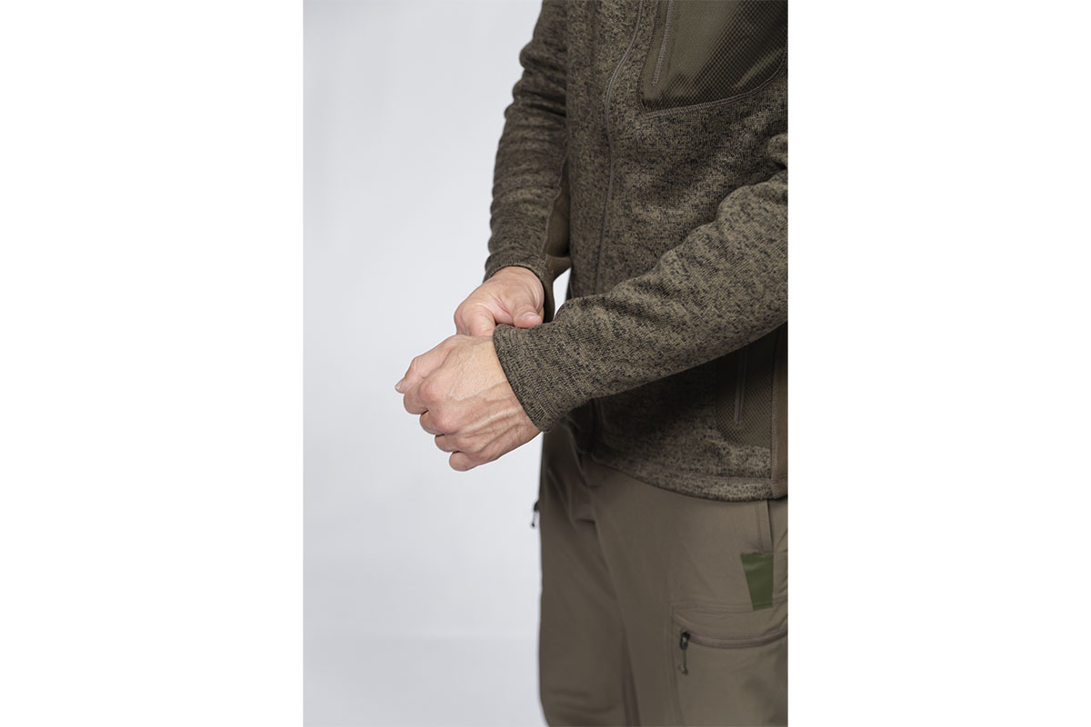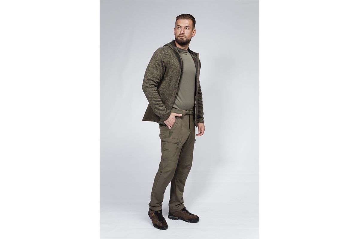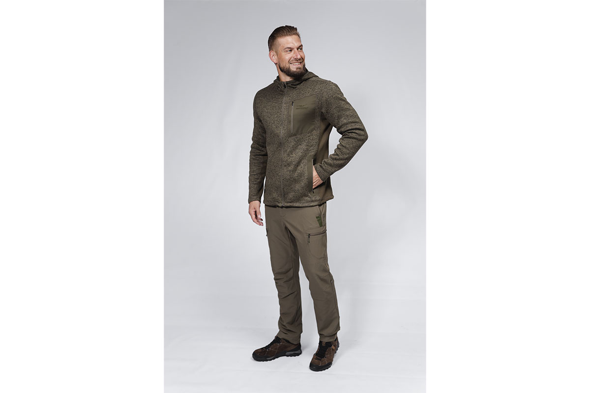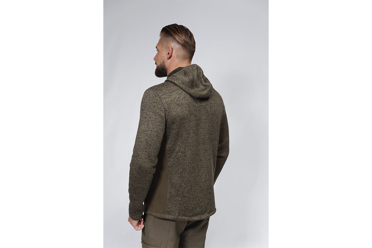 King Hunter Arctic Hood - флисовая куртка с капюшоном из ткани с вязанной текстурой. Анатомический крой куртки не стесняет движений. Теплая и комфортная, может служить в качестве утепляющего слоя одежды в холодное время года, так и быть самостоятельной верхней одеждой. Эластичные вставки на боковых частях придают дополнительный комфорт при использовании в качестве второго слоя одежды.