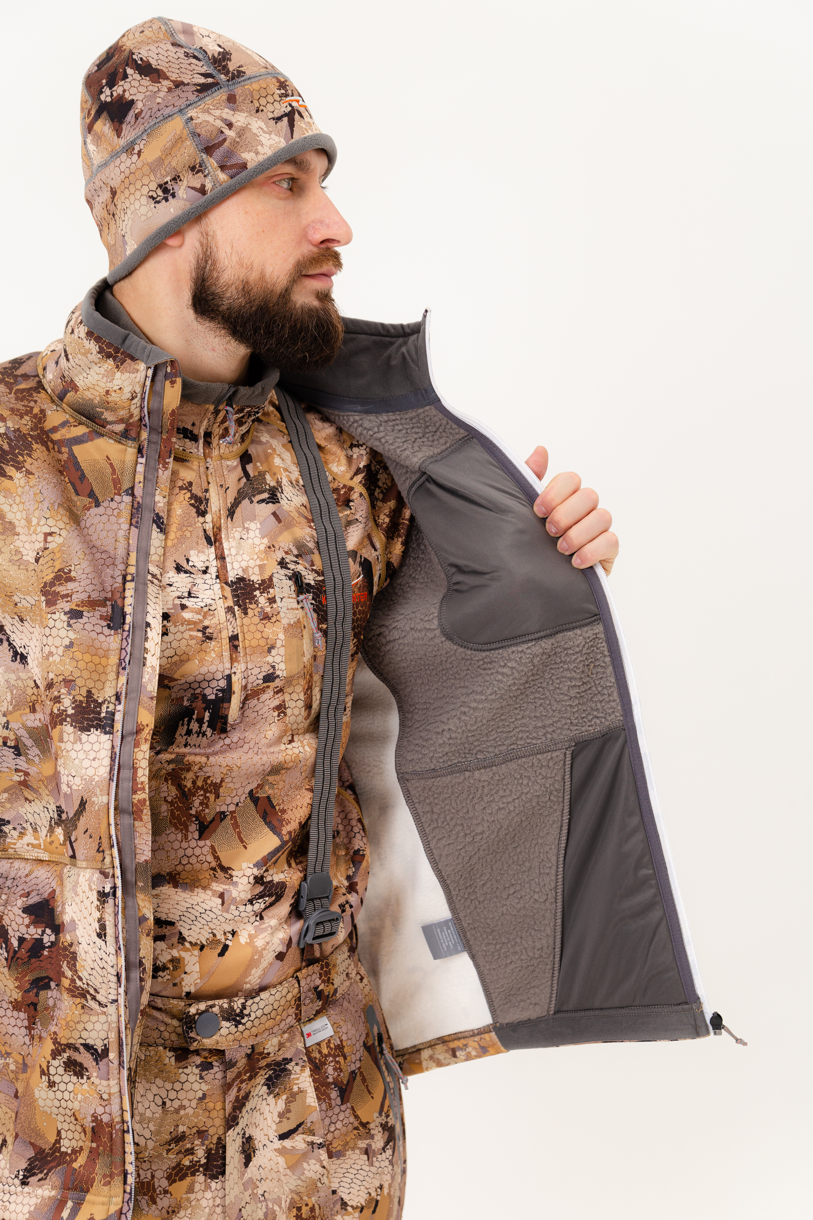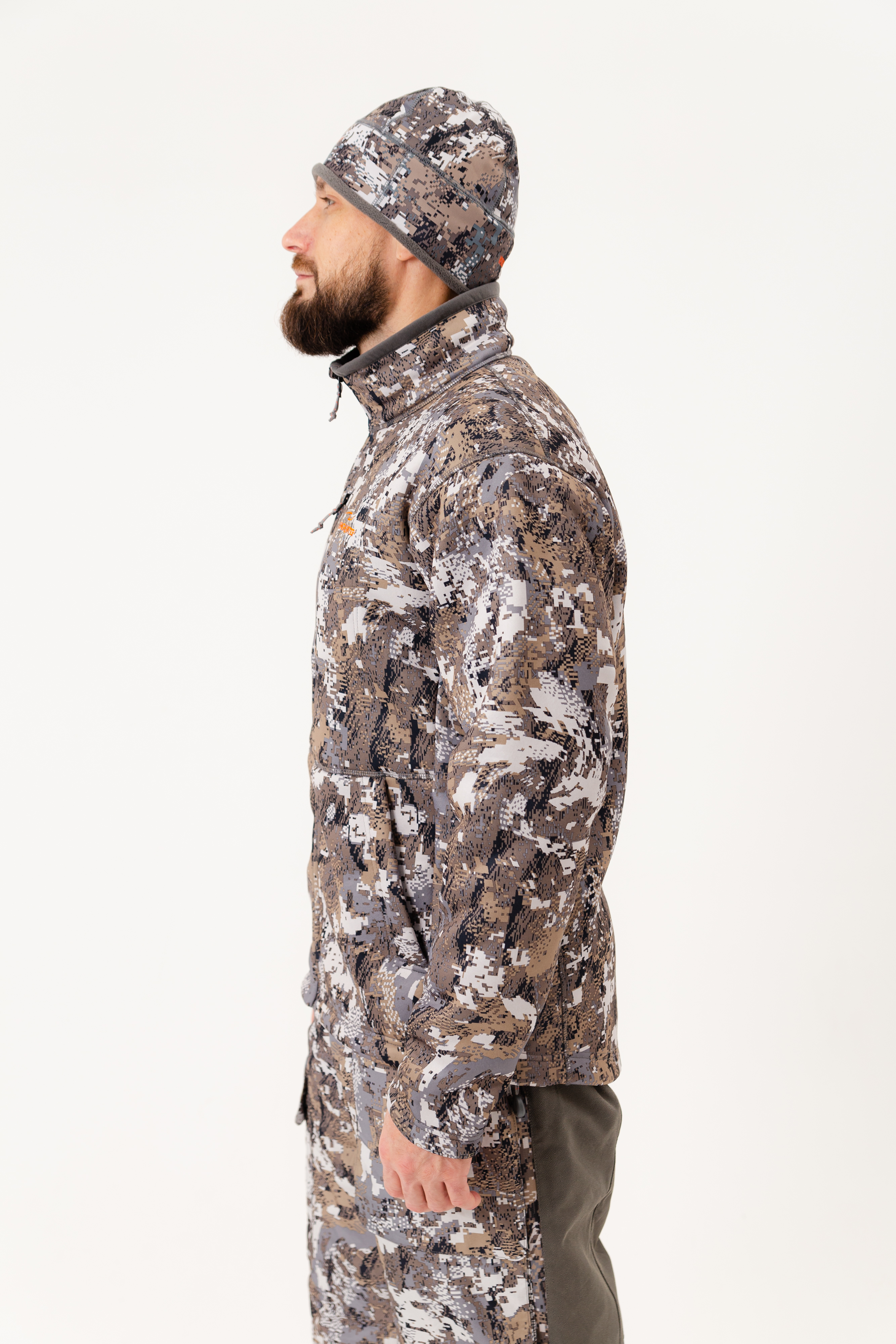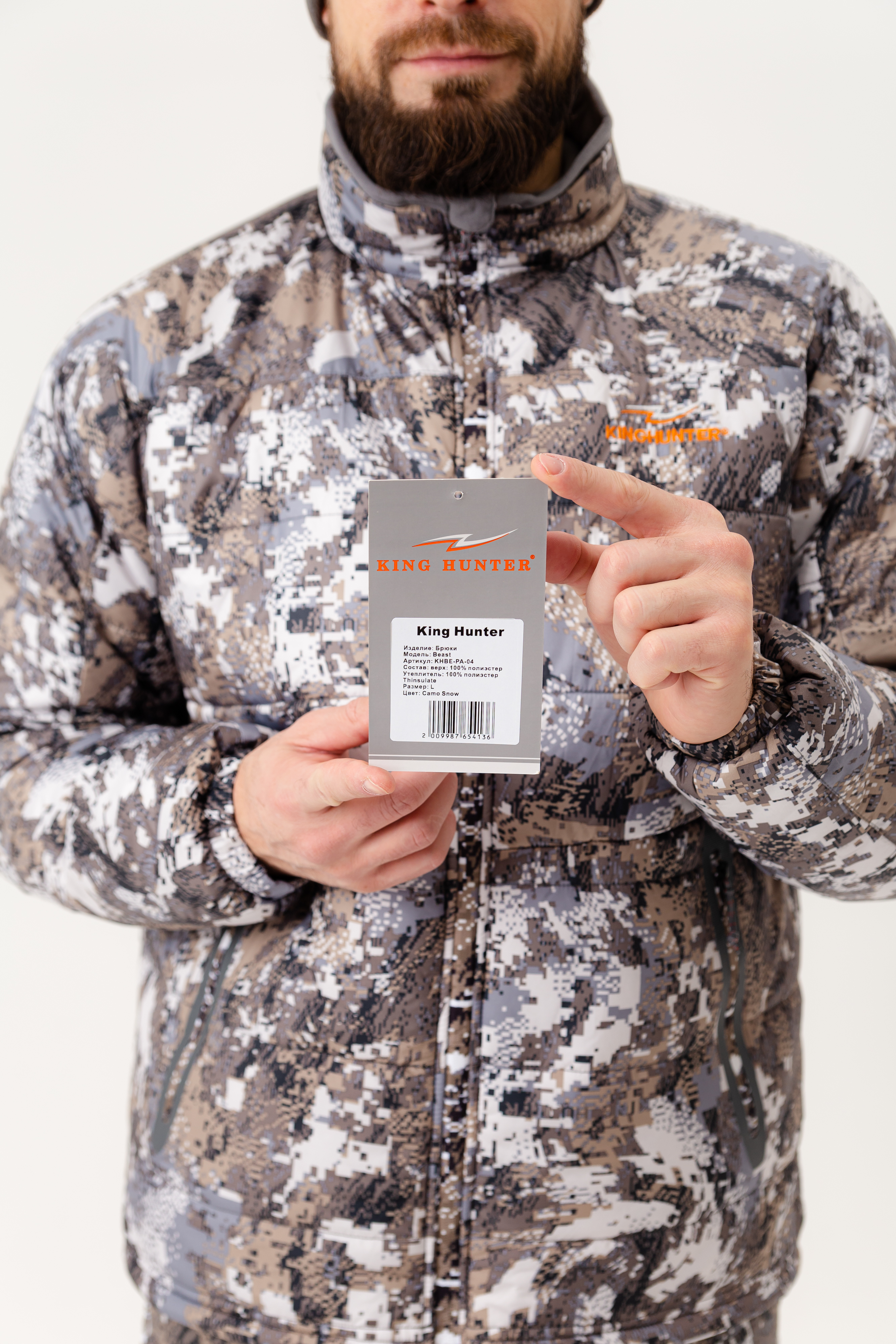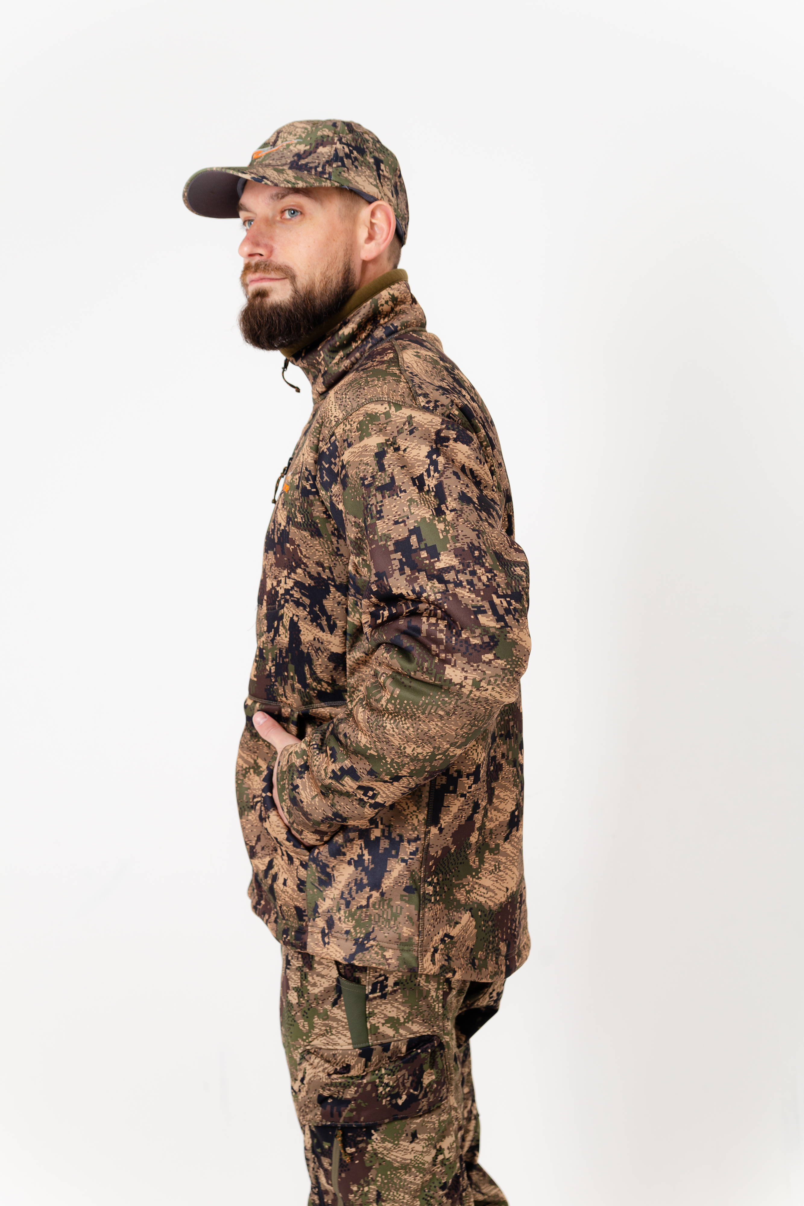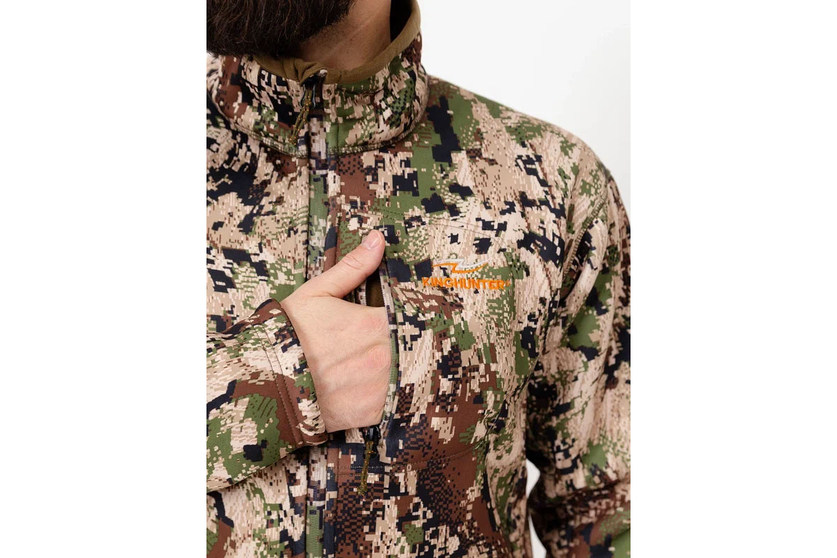 Куртка King Hunter JACKET предназначена для использования в качестве утепляющего слоя. Верх куртки выполнен из плотного полиэстерового трикотажа, благодаря растяжимости не стесняет движений. Не боится легких осадков благодаря водоотталкивающей пропитке DWR, а внутренний слой из мягкой флисовой подкладки сохраняет тепло и отводит лишнюю влагу. Центральная молния во всю длину куртки, позволяет быстро охладить тело при повышении физической нагрузки. Легко надевается на термобелье и под верхнюю одежду, можно использовать как самостоятельную единицу в сухую, безветренную погоду.