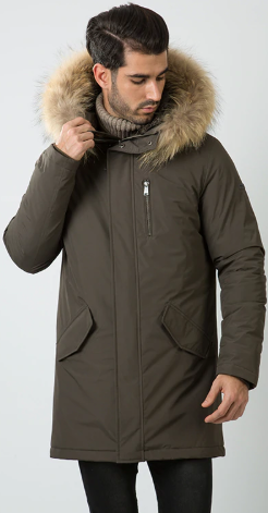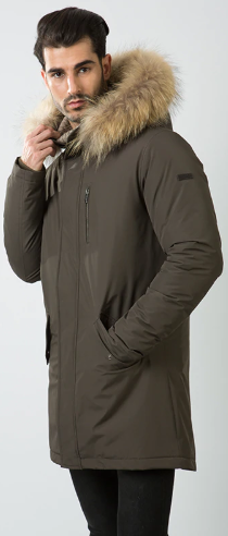 - Несъемный капюшон с отстегиваемой опушкой из натурального енота.