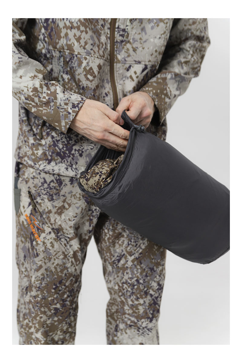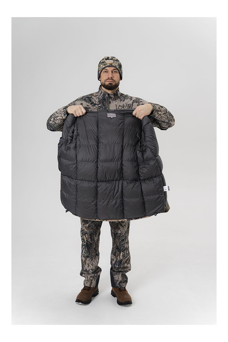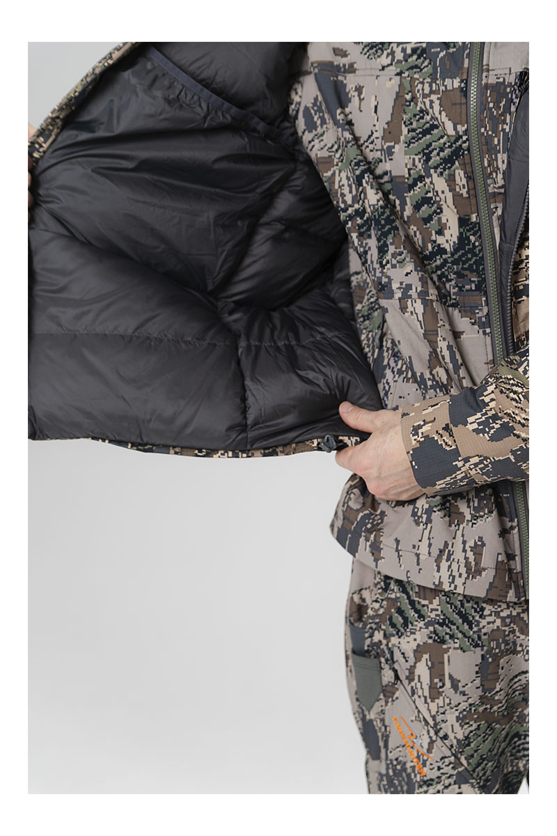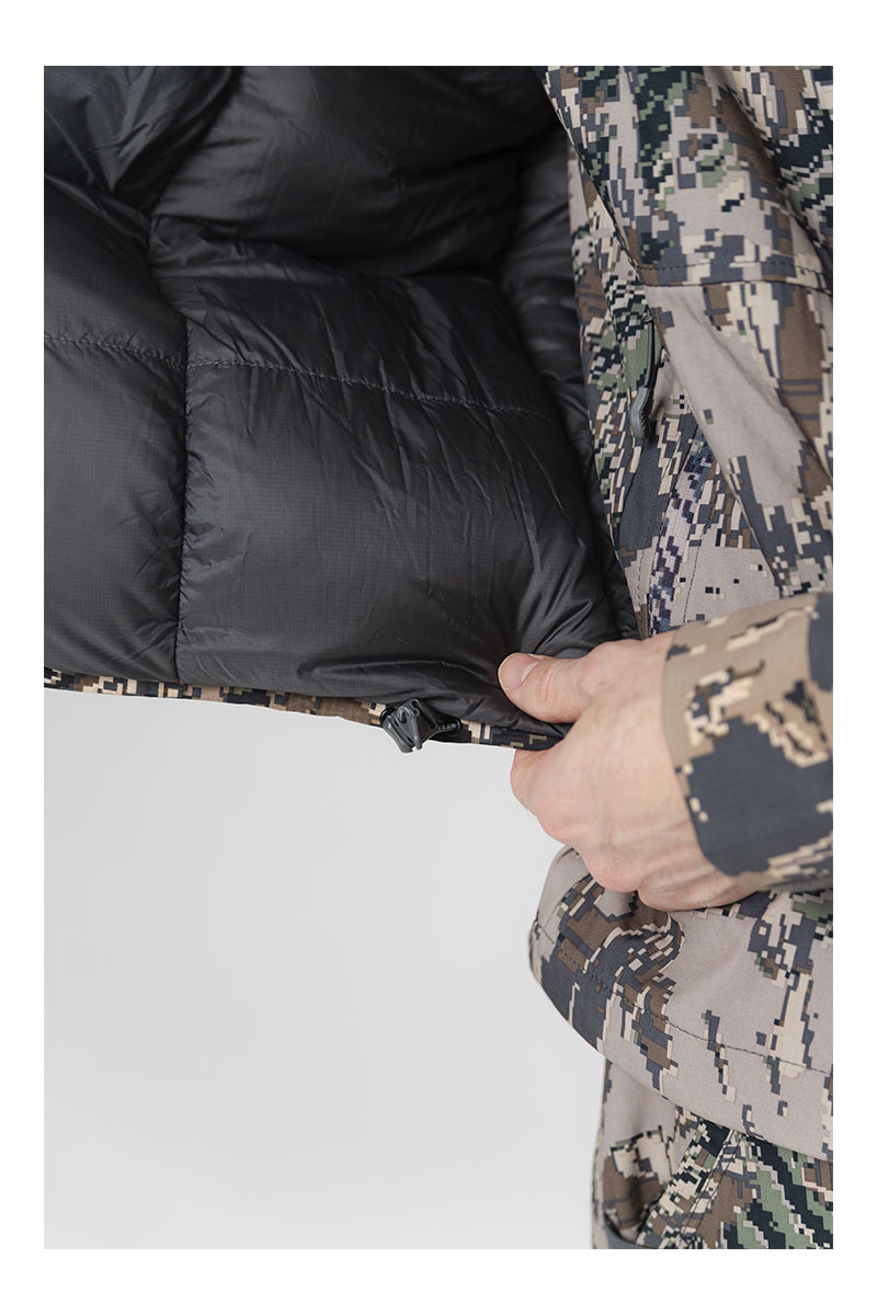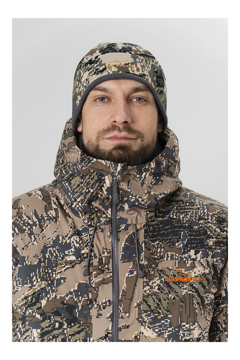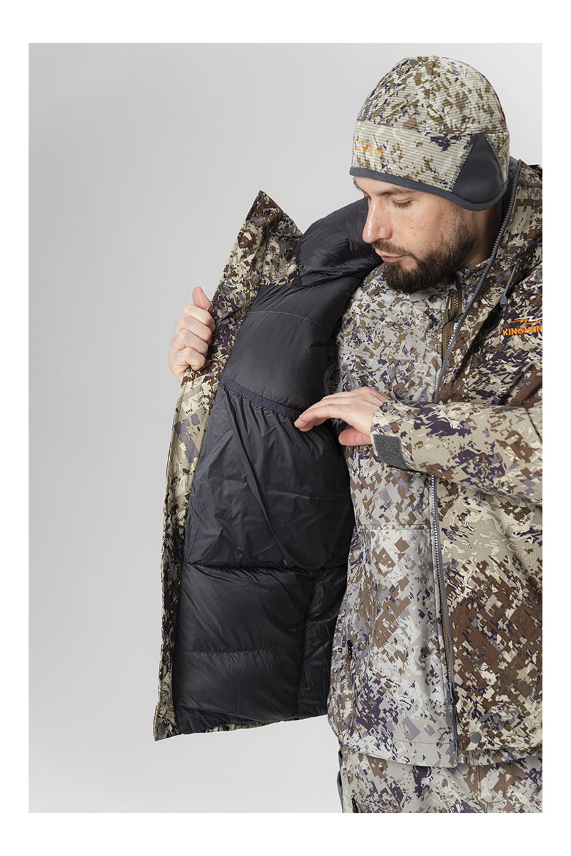 Пуховая куртка King Hunter SHELTER. Самая тёплая и компактная куртка в линейке. Это экипировка для охоты в условиях, когда мороз, ветер и снег бьют без пощады, а движение минимально. Парка держит тепло на «номере», в засидке или при долгом ожидании, не теряя компактности и лёгкости в переноске.