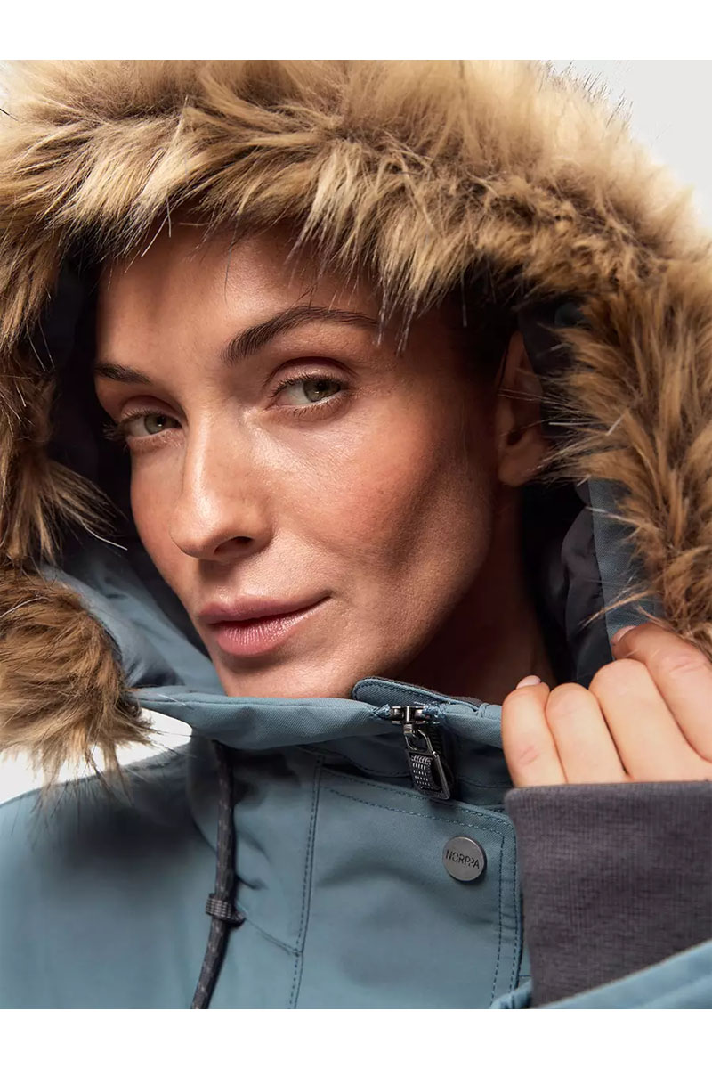Парка женская IREMEL создана для суровых погодных условий. Ее надежная мембранная ткань и утеплитель плотностью 300 г/м² эффективно защищают от холода, ветра и влаги. Эргономичный крой обеспечивает полную свободу движений, а продуманные детали повышают комфорт. Эта модель сочетает в себе северный характер и современные технологии.