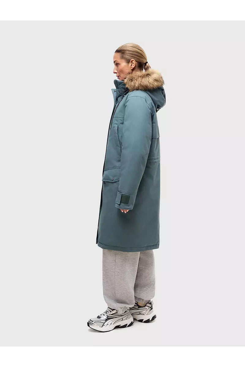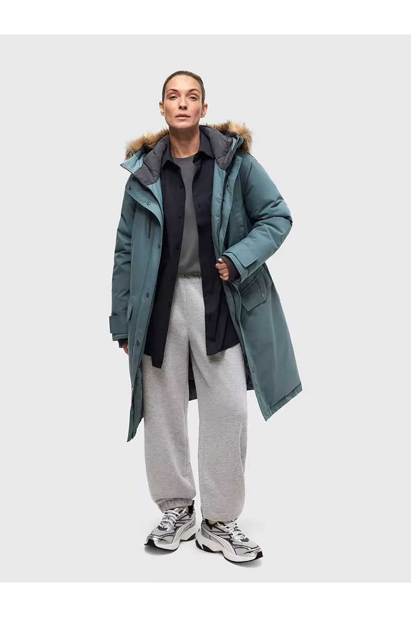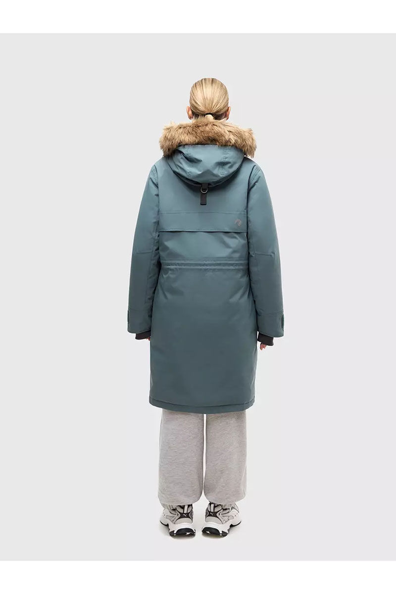 - Фиксированный капюшон со съемной опушкой и регулировка по талии.