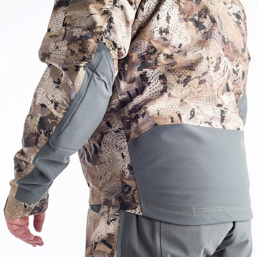 Конструкция и дизайн куртки Layout тщательно продуманы с точки зрения оптимизации каждой детали для охоты из лежачего скрадка. Водонепроницаемая, «дышащая» мембрана GORE-TEX® дополнена утеплителем Primaloft®, расположенным в ключевых местах. Усиленные на локтях и предплечьях рукава не боятся стерни. Система утепления Sitka Ground Shield защищает от холода те участки тела, которые соприкасаются с промерзшей землей.