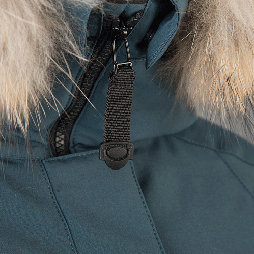 Центральная двухзамковая молния с внешней ветрозащитной планкой на кнопках и утеплённой внутренней планкой. Внутренняя планка в верхней части отделана флисом. |