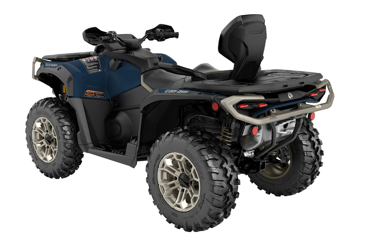 Квадроцикл BRP Outlander MAX LTD 1000R 2026 построен на удлиненной раме платформы G3. Установлен двухцилиндровый двигатель Rotax объемом 1000 куб. см. Трансмиссия оснащена вариатором pDrive и системой полного привода Visco-4Lok с блокировкой дифференциала. В подвеске применяются амортизаторы FOX 1.5 PODIUM QS3 с ручной регулировкой. Штатное оснащение включает мультимедийную систему с 10,25-дюймовым экраном. Модель предназначена для передвижения вдвоем по дорогам и бездорожью.