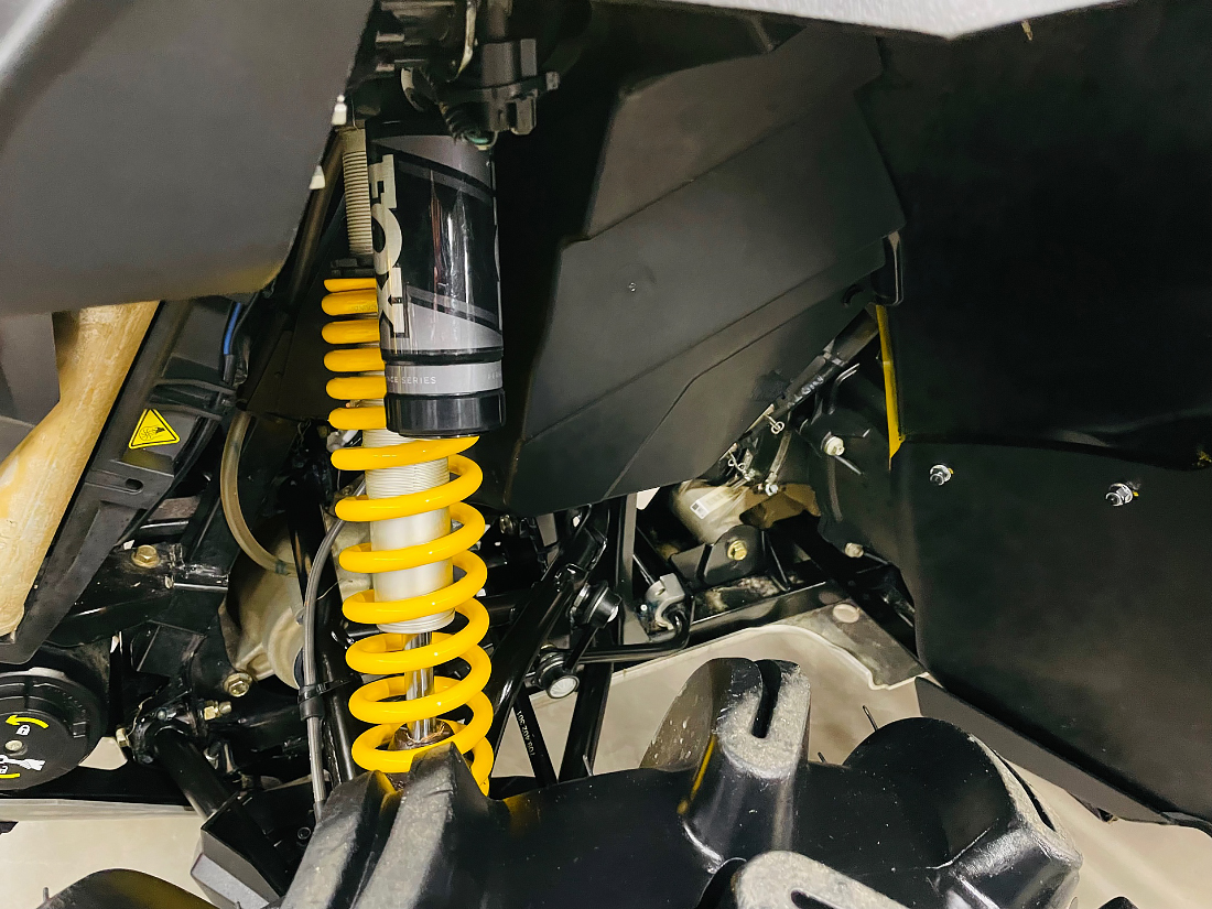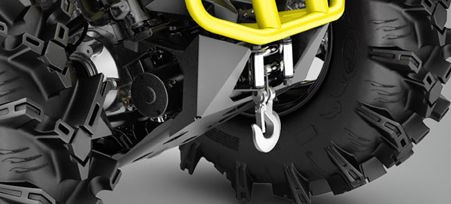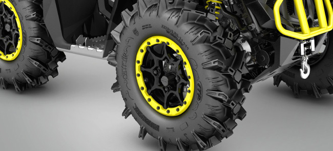 За переднюю подвеску отвечают двойные изогнутые А-образные рычаги и стабилизатор поперечной устойчивости. Независимая задняя подвеска оснащена продольными рычагами (TTI). Колёсная база в 1295 миллиметров дает возможность совершать манёвры даже в сильно ограниченном пространстве. Клиренс в 318 миллиметров позволяет уверенно передвигаться даже по самому жёсткому бездорожью. На задней багажной площадке возможно перевозить до 16 килограмм груза. Высота квадроцикла составляет 1310 миллиметров.