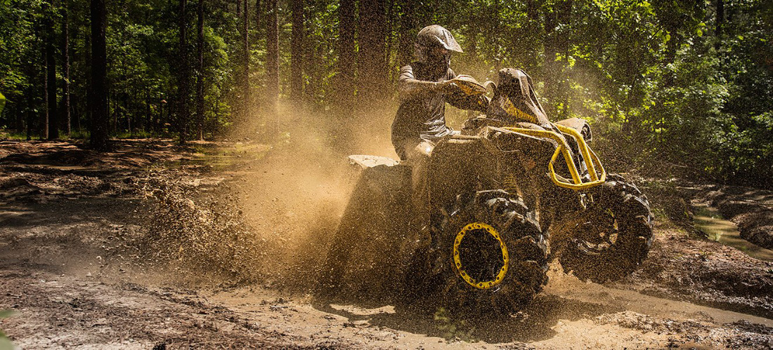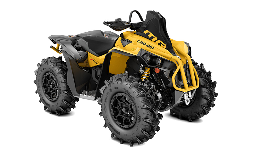 Мотовездеход RENEGADE X MR 1000R оснащён двухцилиндровым двигателем ROTAX с гидравлической системой охлаждения. Система впуска дополнительно оборудована шноркелем. Квадроцикл дополнительно оснащён системой торможения двигателем, что позволяет максимально эффективно тормозить даже во время передвижения по склонам. Ещё одним преимуществом является подключаемый полный привод и возможность его блокировки. Муфта Visco-Lok позволяет по мере необходимости блокировать передний дифференциал.