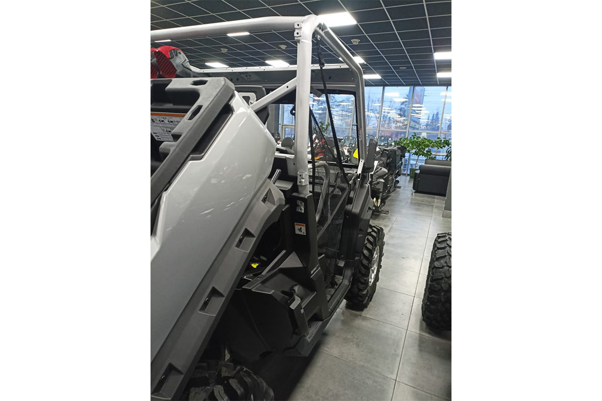 - Дополнительные особенности: светодиодные габаритные огни, батарея 12 В (30 Ач), розетка постоянного тока (10 А), регулируемый по высоте руль, пороговые защитные трубы из алюминия, брызговики.