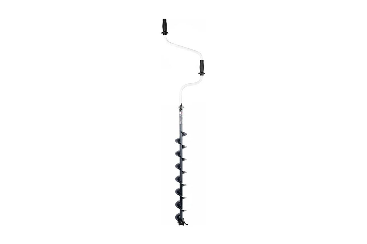 Ледобур для бурения отверстий во льду. Конструкция имеет левое вращение против часовой стрелки. Шнековая часть удлинена. Рукоятки смещены относительно оси для работы двумя руками. Замковая конструкция снижает люфт. Барашек выполнен из композитного материала со стальным сердечником.