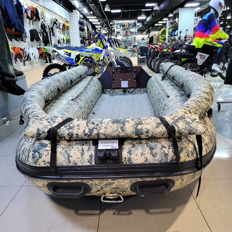 | В КОМПЛЕКТЕ | лодка 2 весла 2 сидения рем. набор (клей, ПВХ-ткань, инструкция по ремонту) насос ножной 5 л. манометр приставка для установки подвесного водометного двигателя сумка для лодки паспорт |