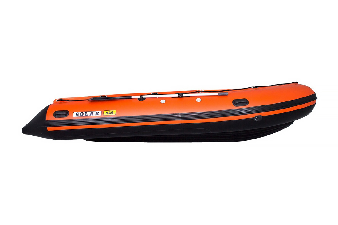 Лодки SOLAR имеют V- образное надувное дно, объемно вклеенное в борта и нос лодки по двум линиям, что придает конструкции жесткость, сравнимую с RIB. Жесткость днища при надувании достигается не из-за давления, а благодаря установленным вертикально и продольно внутри дна переборкам, изготовленным из ткани имеющим нулевые остаточные удлинения.