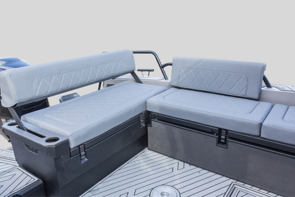 - Рундук-сиденье для кормового кокпита с мягкими подушками по левому борту