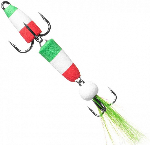 - Приманка имеет составное строение и привлекательный хвост с колеблющимися мерцающими ворсинками.