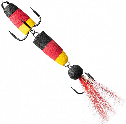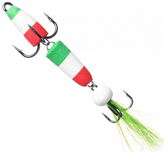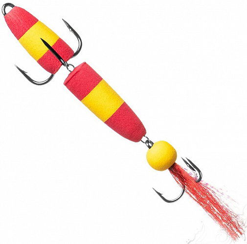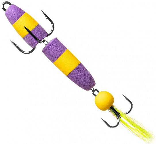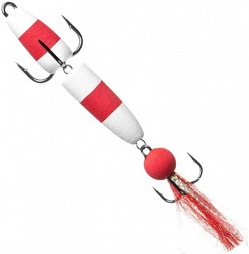 - Приманка имеет составное строение и привлекательный хвост с колеблющимися мерцающими ворсинками.