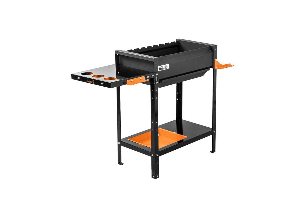 Мангал Helios SMART-600 Оптима — вторая по увеличению опций модель мангала SMART-600. В нее включены: боковой столик с подстаканниками, съемный лоток в полке и держатель для инструментов.