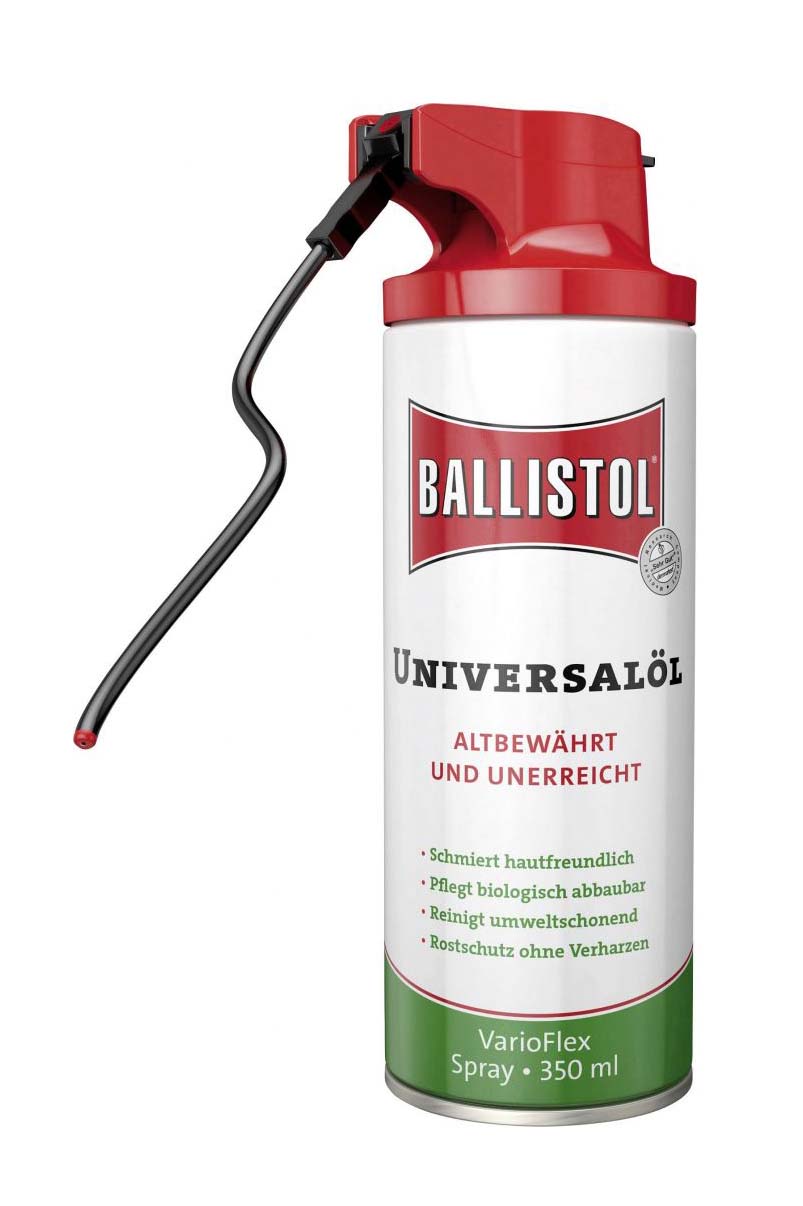 Масло оружейное Ballistol spray VarioFlex 350 мл — универсальное полностью из натуральных ингредиентов (без химии). Отлично удаляет омеднение, освинцовку, томпак, нагар со стволов и патронников огнестрельного оружия, защищает деревянные части оружия, очищает, пропитывает и размягчает изделия из кожи. Обладает антисептическими и противовоспалительными свойствами.