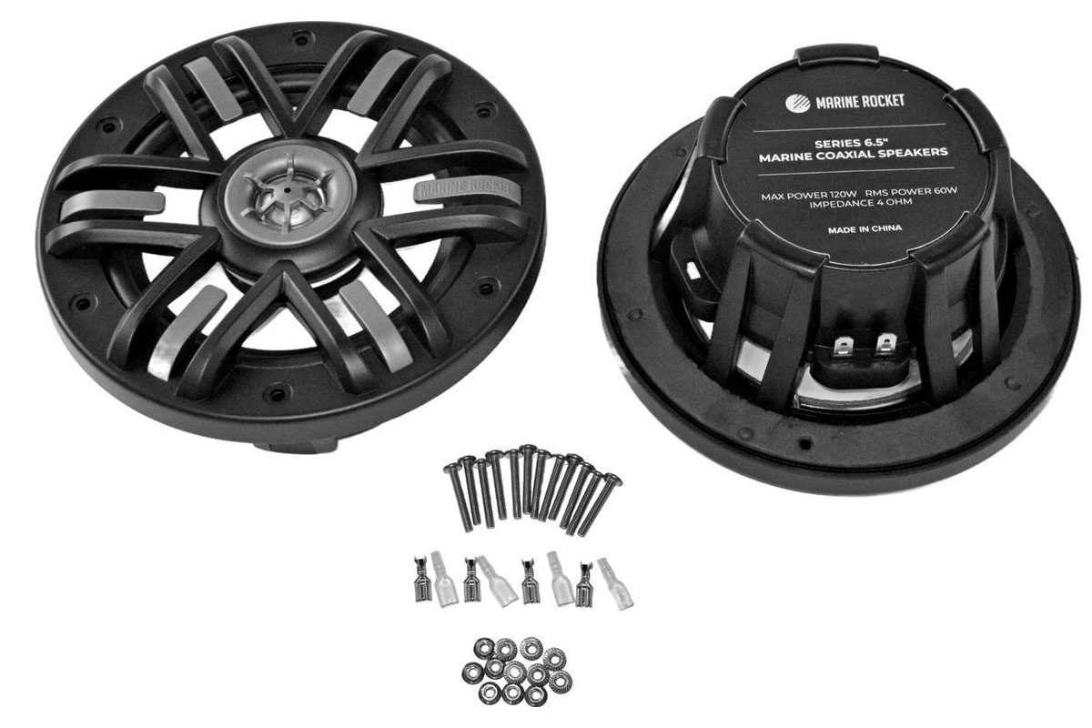 Двухполосная акустическая система в черном корпусе. Динамики имеют диаметр 6.5 дюймов. Номинальная мощность составляет 60 Вт на канал. Сопротивление системы — 4 Ома. Корпус обладает защитой от воздействия воды по стандарту IPX6.