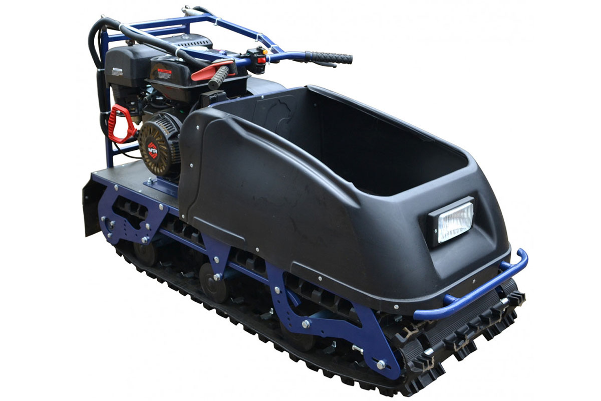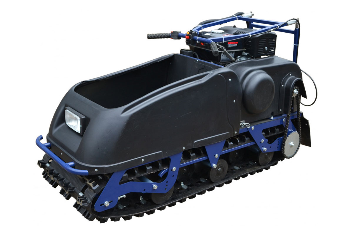 Мотобуксировщик Барс Следопыт R 15 DS Мотобуксировщик оснащен двигателем 15 л.с. с ручным запуском. Транспортное средство имеет вариаторную трансмиссию и задний привод. Конструкция использует гусеничную ленту шириной 500 мм. Имеется дисковый механический тормоз. Масса устройства составляет 113 кг. Габаритные размеры в транспортном положении — 1550 × 570 × 850 мм. Допустимая масса перевозимого груза — 40 кг. Буксируемый прицеп может иметь массу до 200 кг. Для работы используется бензин АИ-92.