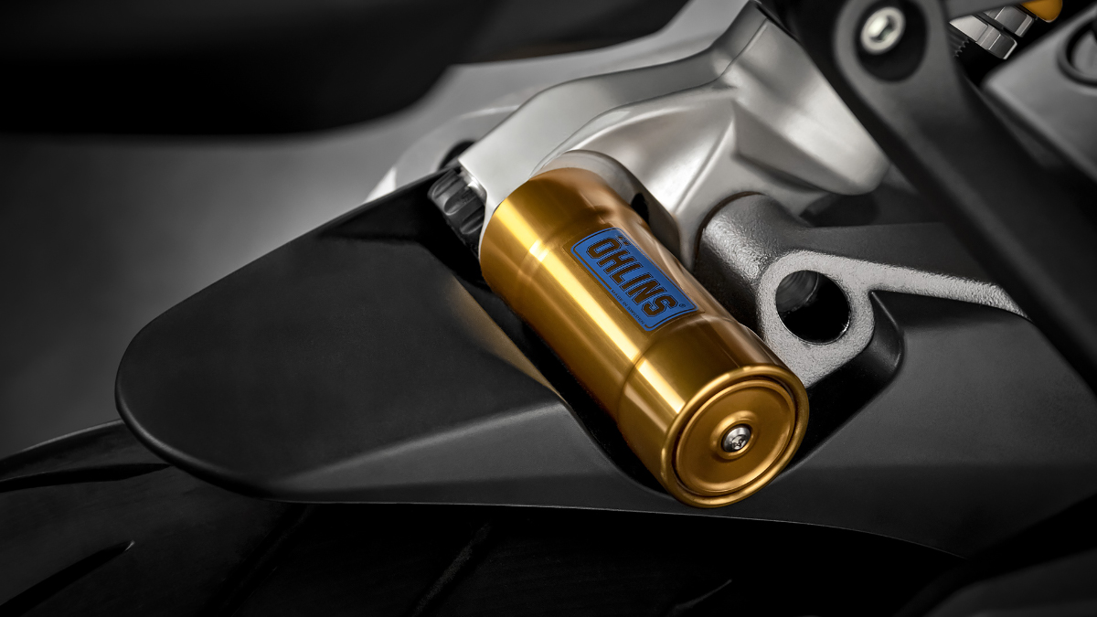 Задняя подвеска Прогрессивная связь, полностью регулируемый моноамортизатор Öhlins, алюминиевый односторонний маятник