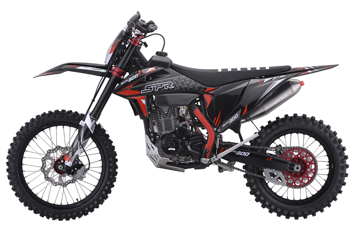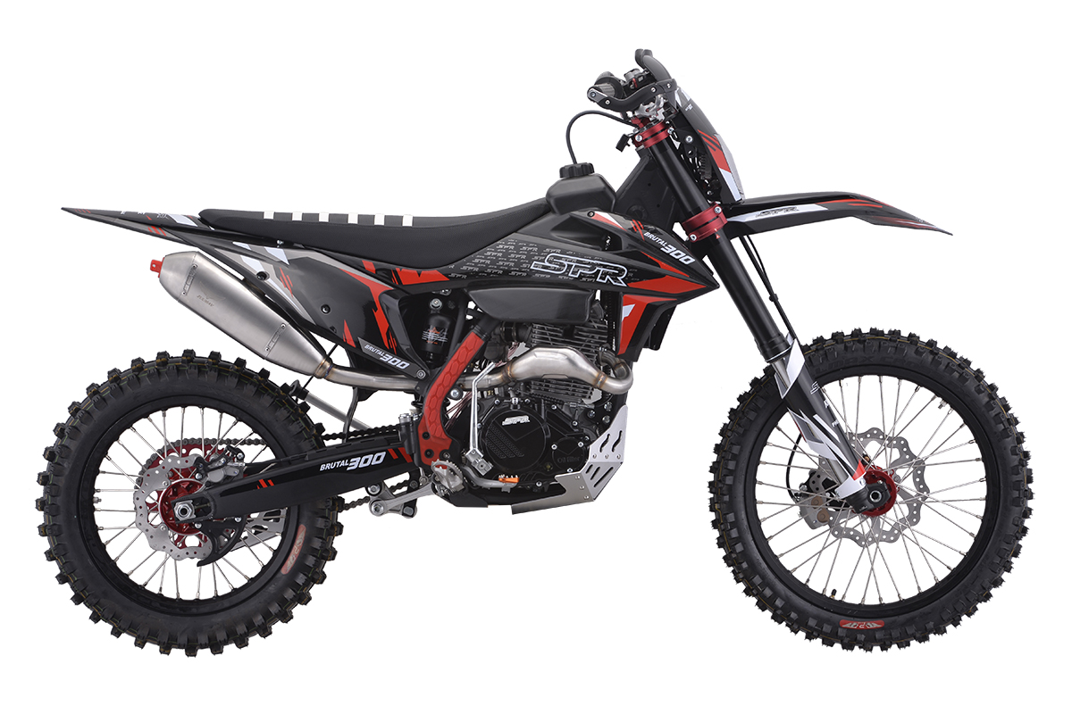 Мотоцикл SPR BRUTAL 300 относится к моделям 2024 года. Конструкция предназначена для эксплуатации в условиях бездорожья.