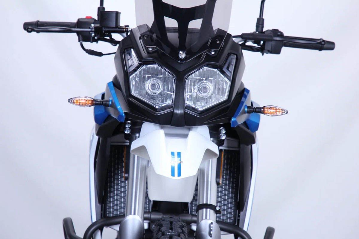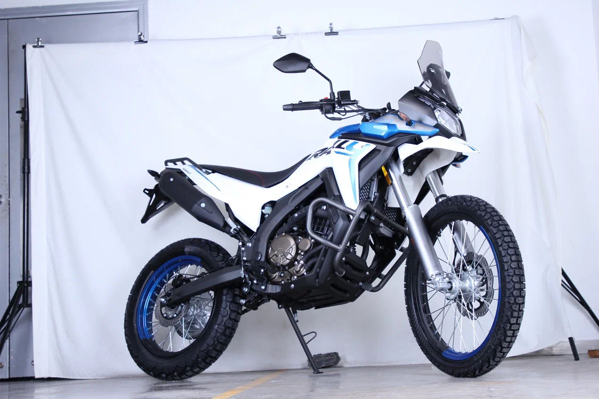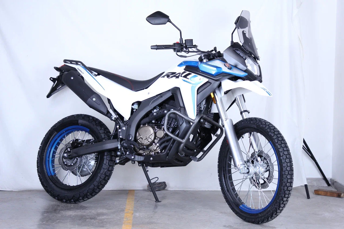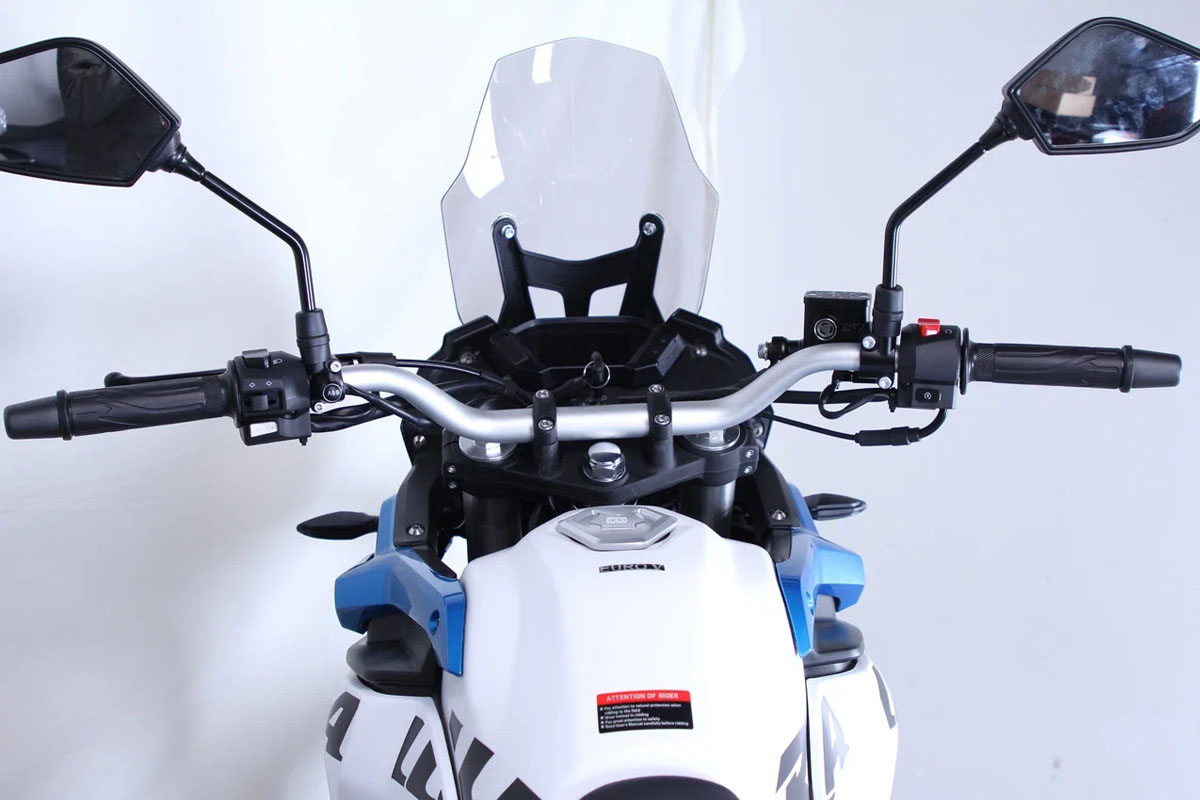 - Защита и оснащение: Высокий дорожный просвет (клиренс 280 мм) и ветровое стекло в стиле раллийных мотоциклов.