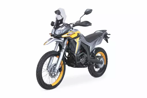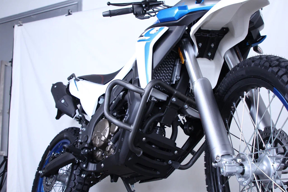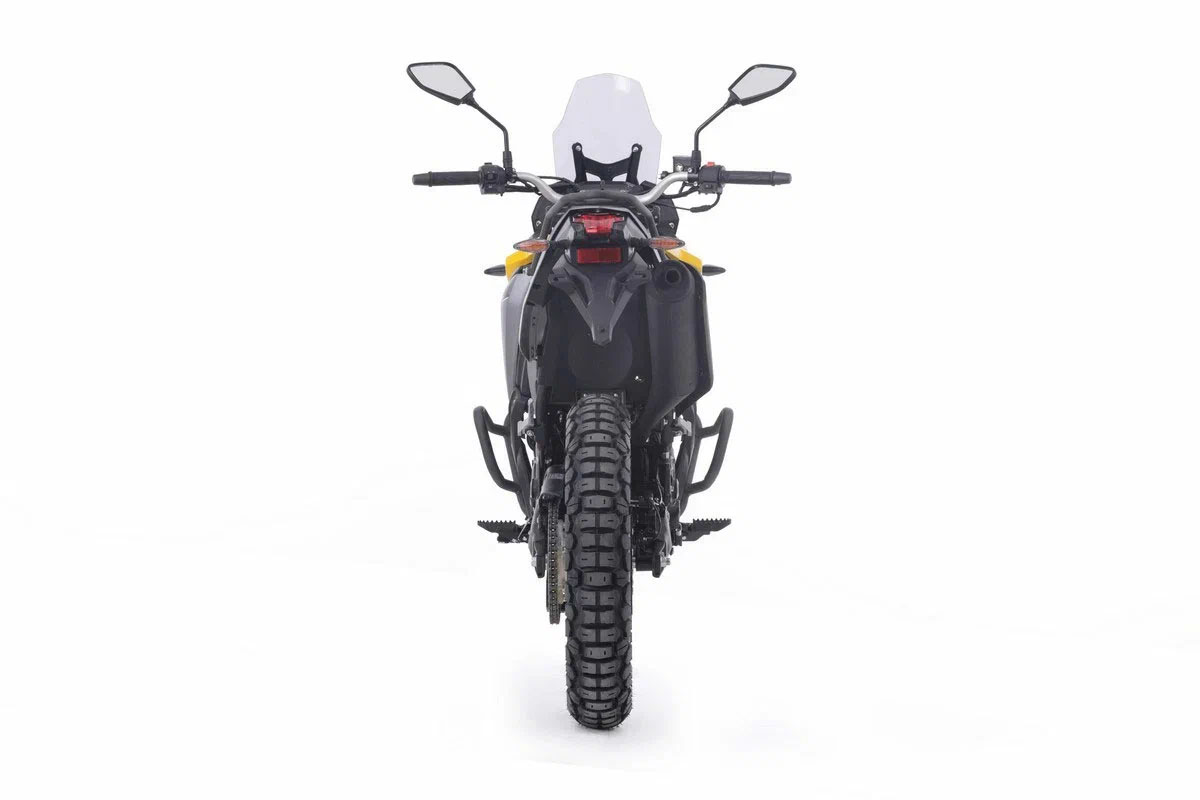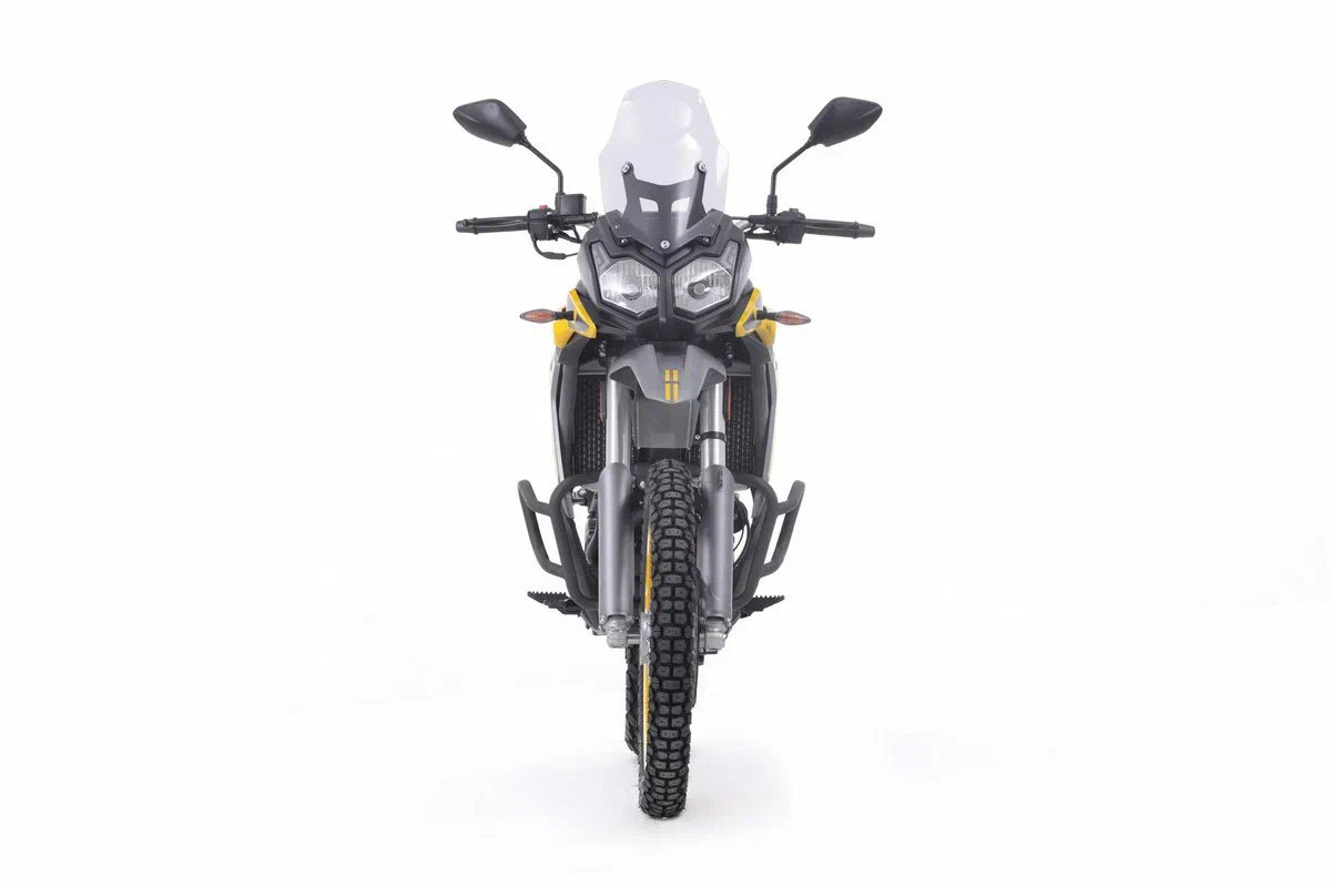 - Защита и оснащение: Высокий дорожный просвет (клиренс 280 мм) и ветровое стекло в стиле раллийных мотоциклов.