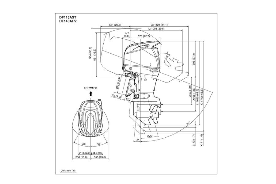 Suzuki DF140ATL наделена двухступенчатой редукцией и смещенным приводным валом, которые способствуют уменьшению размера двигателя, сбалансированности, снижению уровня вибрации и обеспечивают лучшую работу мотора.
