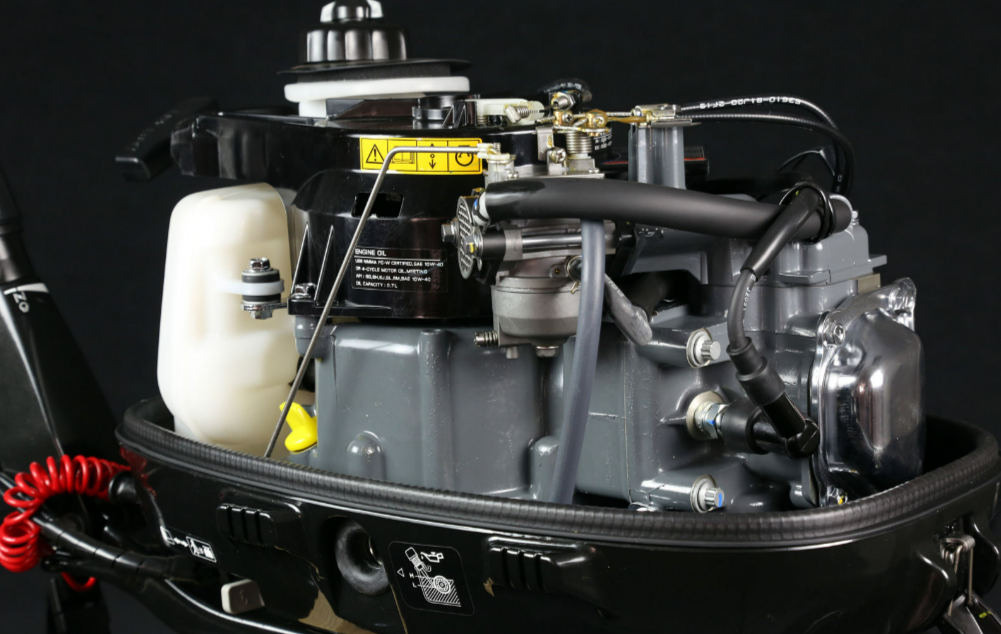 Подвесной четырехтактный двигатель Suzuki DF4S мощностью 4 л.с. оснащен автоматическим подсосом, электронным зажиганием CDI и возможностью поворота на 180°. Конструкция предусматривает два положения наклона дейдвуда. Двигатель комплектуется встроенным топливным баком объемом 1,5 литра и имеет соединение для подключения переносного бака. Вибрация снижена за счет резиновой прокладки в рулевой ручке, которая также имеет гладкую кольцевую форму для удобства переноски. Четырехтактная конструкция исключает необходимость смешивания топлива с маслом, способствует снижению расхода топлива, уровня шума и вибраций.