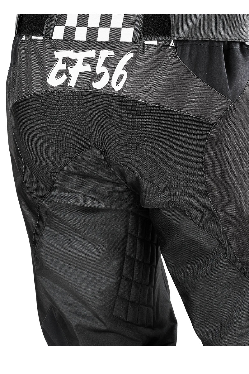 Кроссовые штаны модели EF56 Base созданы для мотокросса и эндуро. Конструкция ориентирована на активную езду. В основе лежит полиэстер с высокой устойчивостью к истиранию. Покрой рассчитан на использование с защитной экипировкой. Дизайн выполнен в современной стилистике. Система регулировок позволяет настроить посадку. Модель относится к категории базовой экипировки.