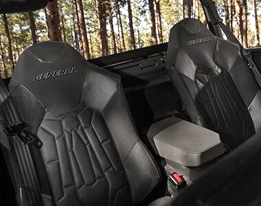 Семейство Polaris GENERAL известно самой высокой комфортабельностью среди всех кроссоверов side-by-side. Неровности дороги и колеи – не значат ничего с лучшей в классе подвеской. Лёгкое и отзывчивое рулевое управление обеспечивает великолепную управляемость. Анатомические сиденья сделают внедорожную езду ещё комфортнее.
