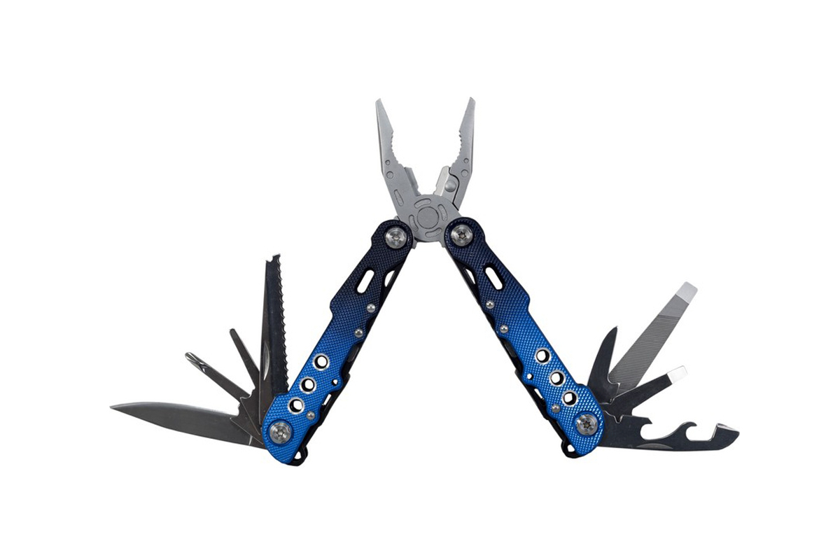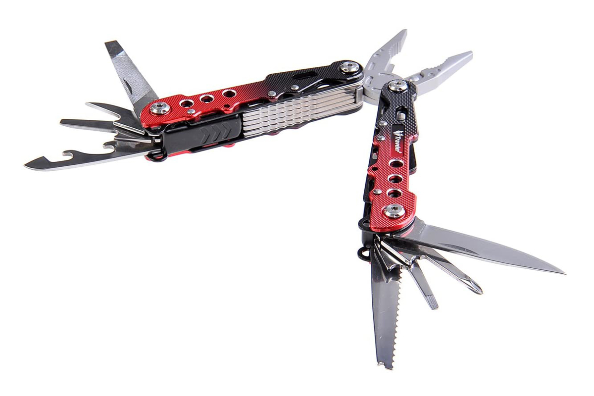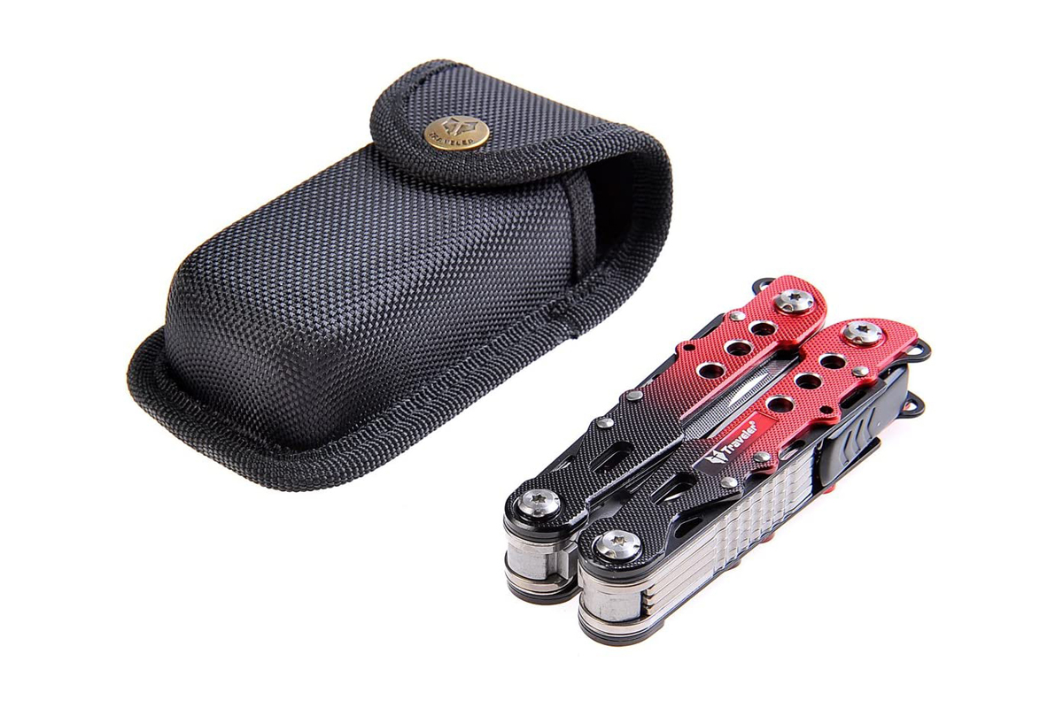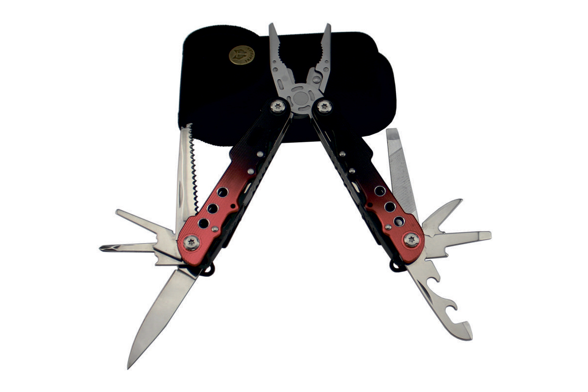 - В комплекте: плоскогубцы и 8 инструментов из особо твердой нержавеющей стали 3CR13 (лезвие, пила, консервный нож, открывалка для бутылок, отвертка (крестовая + плоская), напильник.