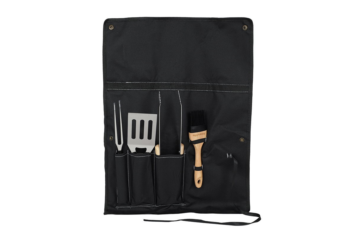 Набор приборов для барбекю из 4 предметов – лопатка, вилка, щетка для масла и зажим