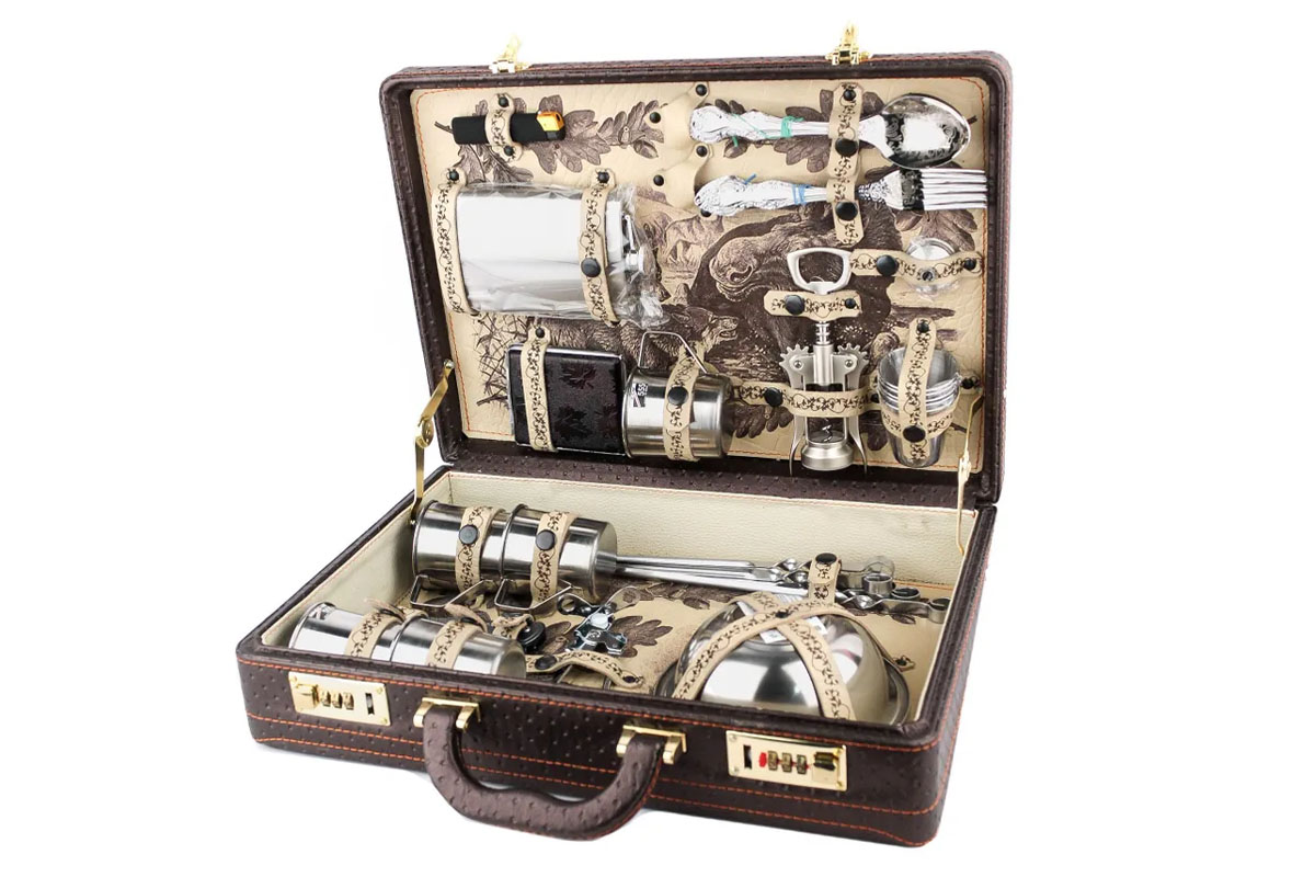 Подарочный набор серии Турист «Турист-6». Этот набор можно подарить тем, кто часто ездит на дачу, на рыбалку или охоту, или в небольшие походы. В компактном прочном чемоданчике собрано все, чтобы отлично провести время на природе. Поэтому поторопитесь заказать подарочный набор серии Турист «Турист-6».