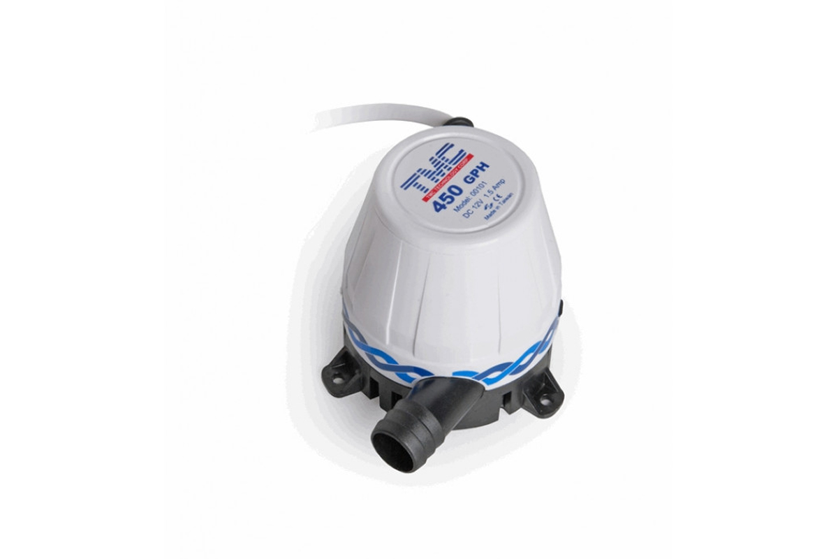 Насос осушительный 450GPH, 12В для откачки воды из трюмного пространства маломерного судна. Запуск насоса осуществляться как в ручном, так и в автоматическом режиме с помощью дополнительно установленного поплавкового переключателя.
