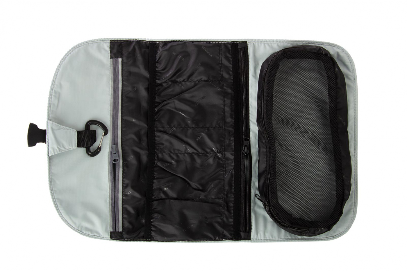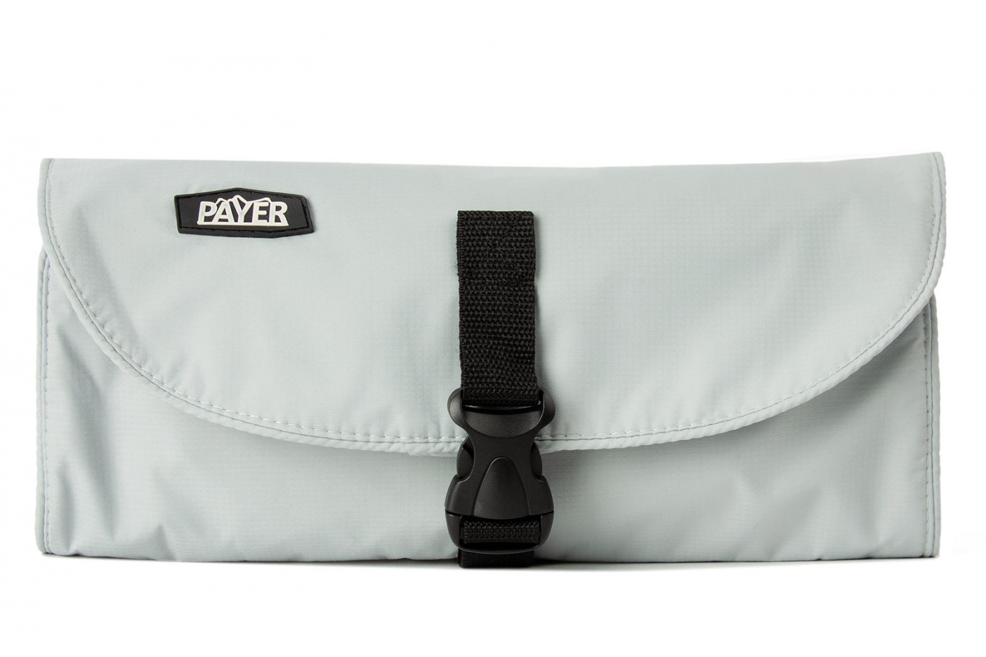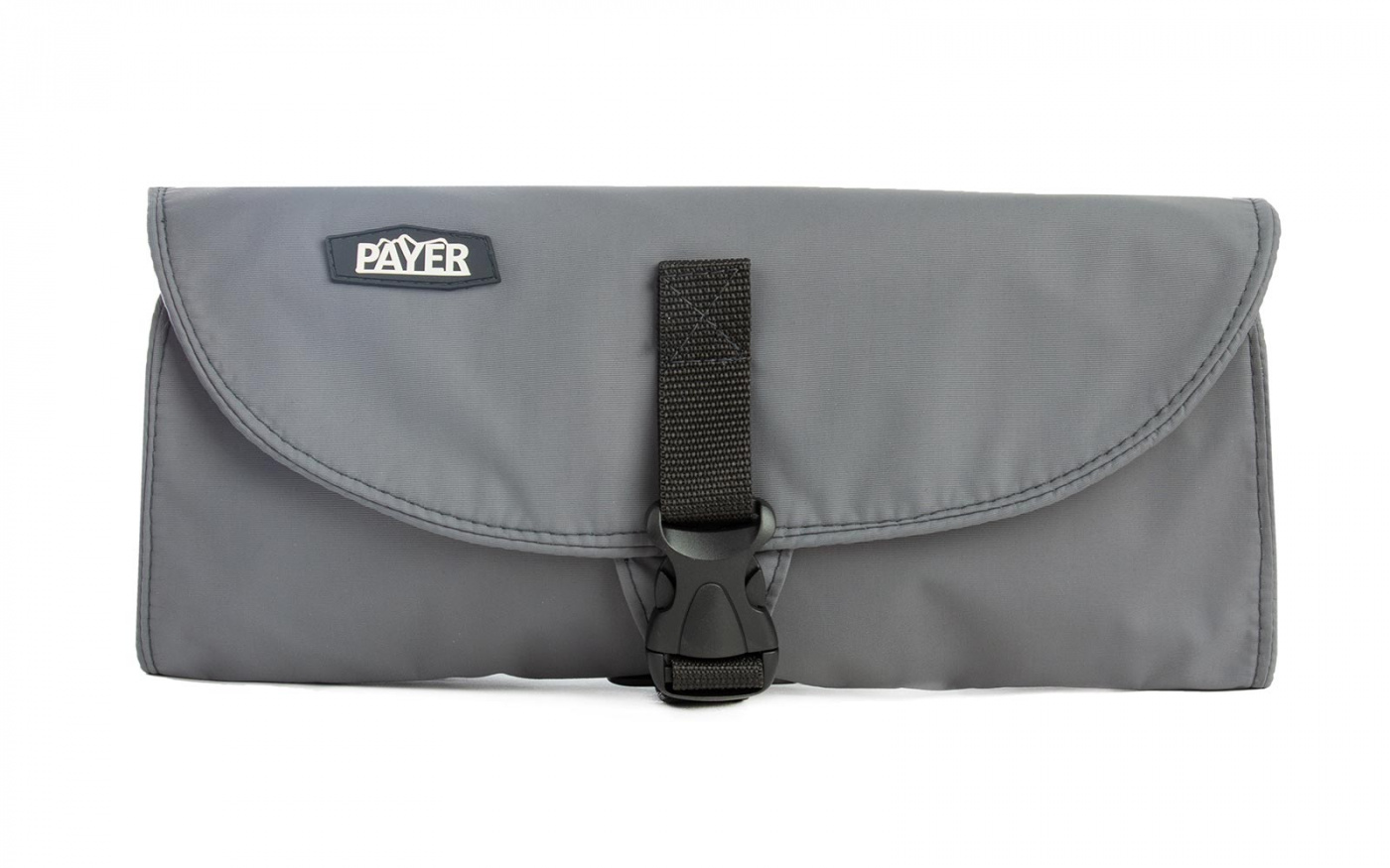 Несессер Payer оборудован встроенным карабином, за который его можно подвесить к крючку, на ветку дерева или зацепить за кольцо рюкзака, если есть необходимость держать аксессуар снаружи и иметь быстрый доступ к нему. В сложенном состоянии фиксируется фастексом.