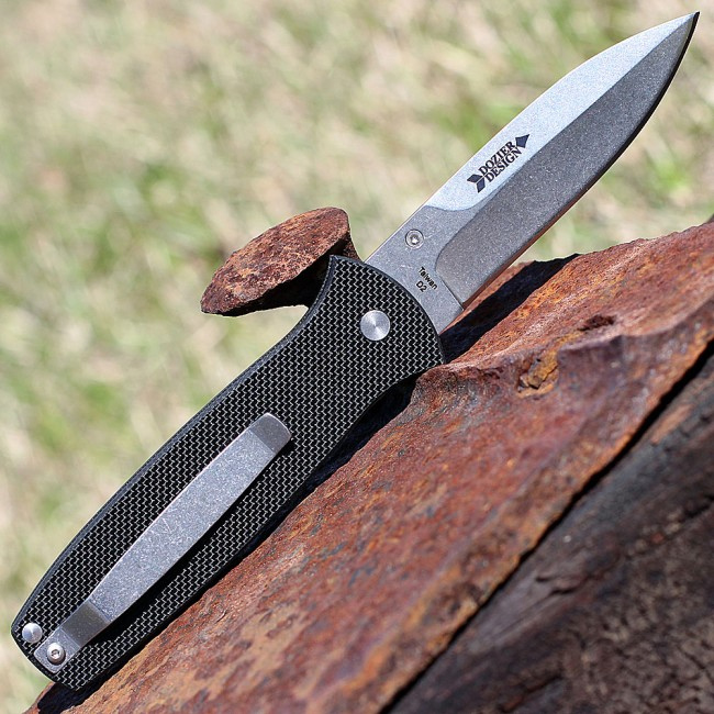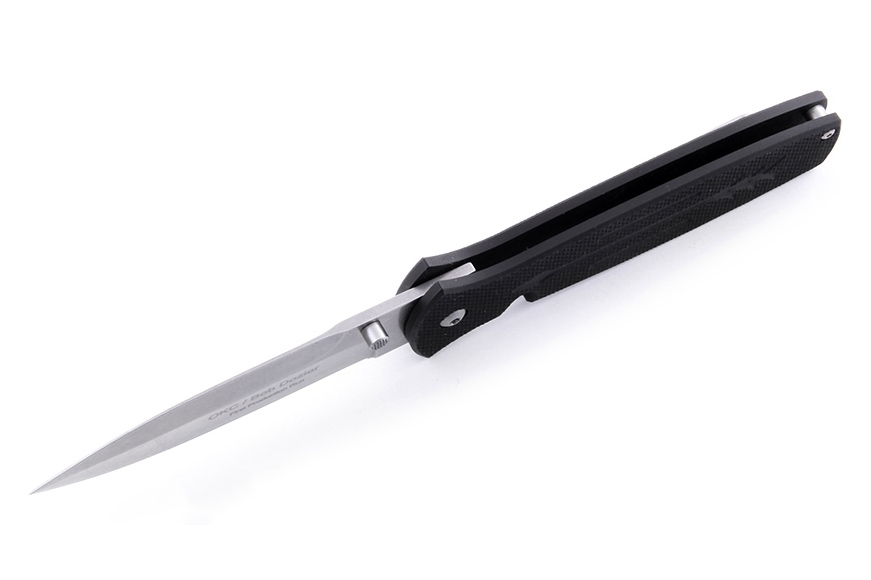 Клинок изготовлен из инструментальной стали D2 с обработкой Stonewash, предлагающей превосходную износостойкость и долгое сохранение бритвенной остроты режущей кромки. Клинок сделан в стиле Spear-Point. Кончик ножа усилен ребром жесткости, которое будет оберегать его от скола при боковых нагрузках. Форма клинка хорошо приспособлена для уколов и проникающих ударов.