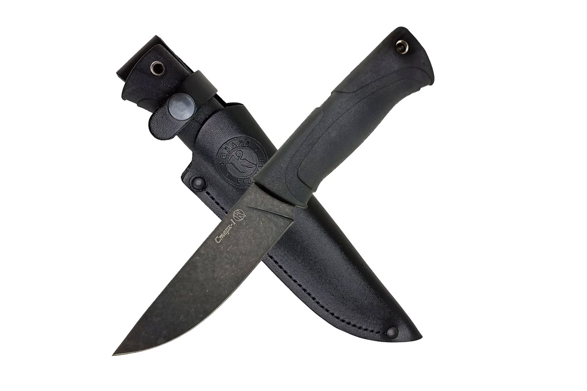 Рукоять ножа изготовлена из эластрона, материала, который не скользит и не нагревается, обеспечивая комфорт и безопасность при использовании. Эластрон устойчив к перепадам температур, что делает нож “Стерх-1” универсальным инструментом для туристов и путешественников.