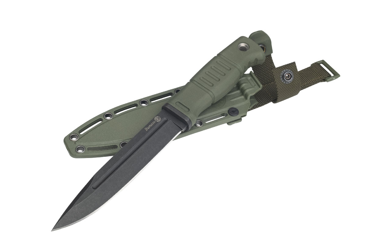 Дизайн модели унаследован от военных аналогов. Рукоять имеет выраженную эргономику для надежного удержания. Толстый обух и профиль клинка адаптированы для силовых работ. Сталь AUS-8 демонстрирует стойкость к коррозии. Материал рукояти сохраняет сцепление при намокании.