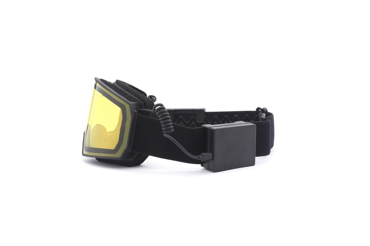 Очки с подогревом в чёрном цвете для активного отдыха в холодный сезон. Модель создана для использования при низких температурах и ветре. Конструкция включает систему обогрева линз. Каркас выполнен из ударопрочных материалов. Элементы питания вынесены в отдельный блок. Зарядка аккумулятора осуществляется через кабель. В комплекте предусмотрен чехол для хранения.