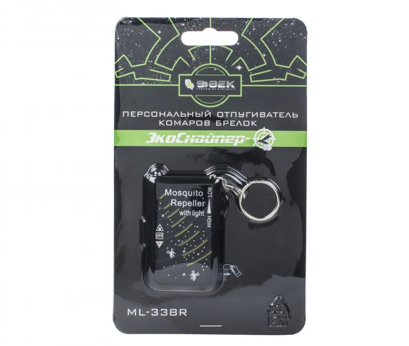 Экоснайпер МЛ-338Р — это компактный персональный брелок с крепежным кольцом, предназначенным для удобной переноски прибора на одежде, рюкзаке и т.д., вмонтированным регулятором частоты звуковых колебаний и миниатюрным фонариком.
