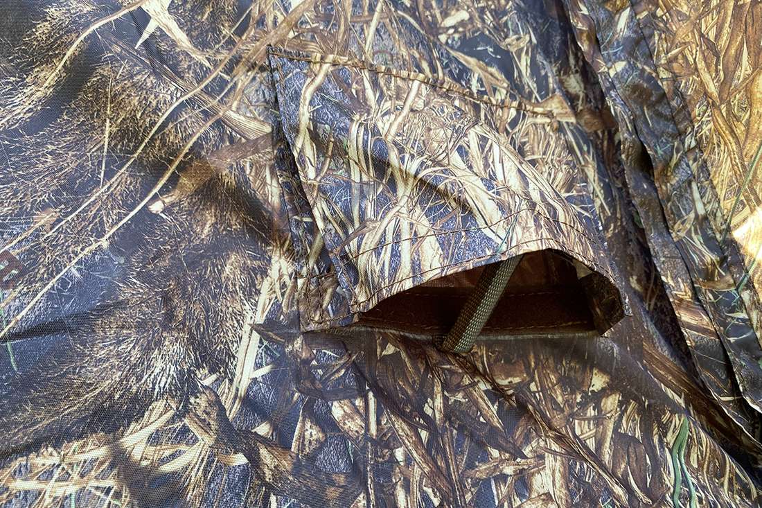 - Внешний тент соединен с каркасом надежными липами из ПВХ. Они имеют большую ширину и находятся в местах сгибов, предотвращая складывание дуг, а также защищая тент палатки от механических повреждений.