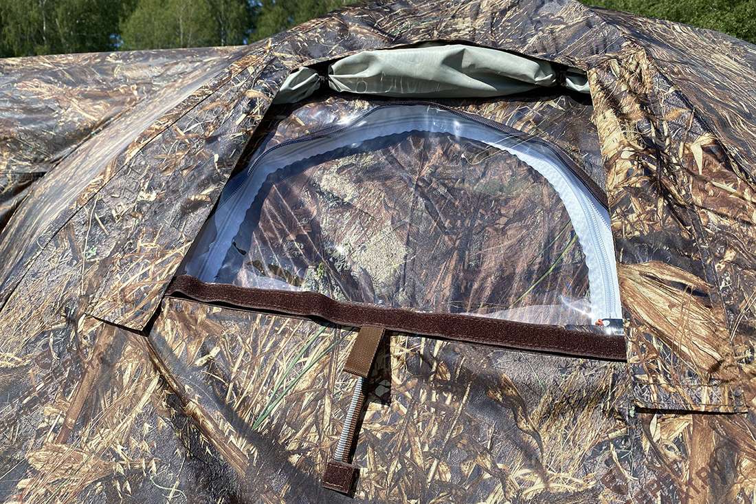 - Молния над входом для пристегивания тамбура или перехода-соединителя;