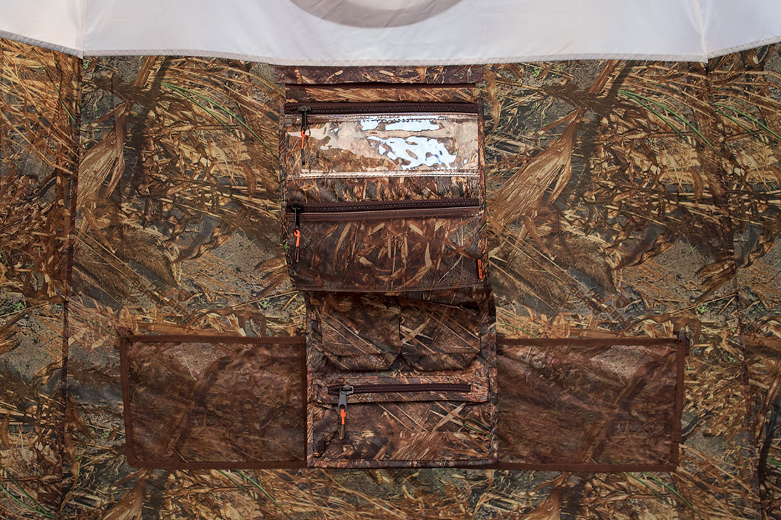 - Органайзеры на липе, полка-сетка под куполом, стационарные карманы для хранения;